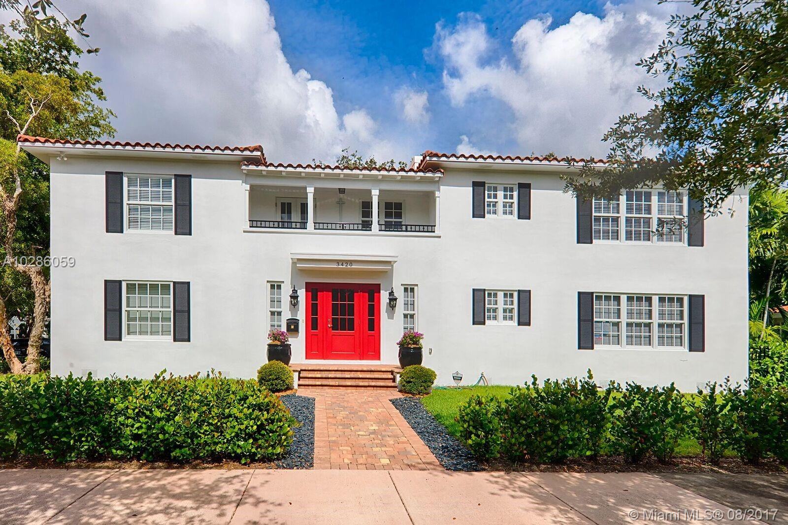 Art Deco 6 Bdrms/5 Baths, Single Family Home, on Oak-Lined Segovia. Renovated to perfection & saving the Distinct Deco Details. 1st Flr: Formal LR w/Deco Frplc, stunning huge Chef’s Kit, formal DR, huge Fam Rm, Office/Bdrm, 2 baths, 2 Car Garage. 2nd Flr: Huge Master Suite w/gorgeous Bathroom & Walk-In Closet, 4 additional Bedrms + 2 Baths, Laundry Rm, & additional Fam Rm w/Deco Frplc.& balcony. Lg Garden w/coral rock patio, room for pool. All Impact glass, all Oak Flrs, all Brand New!