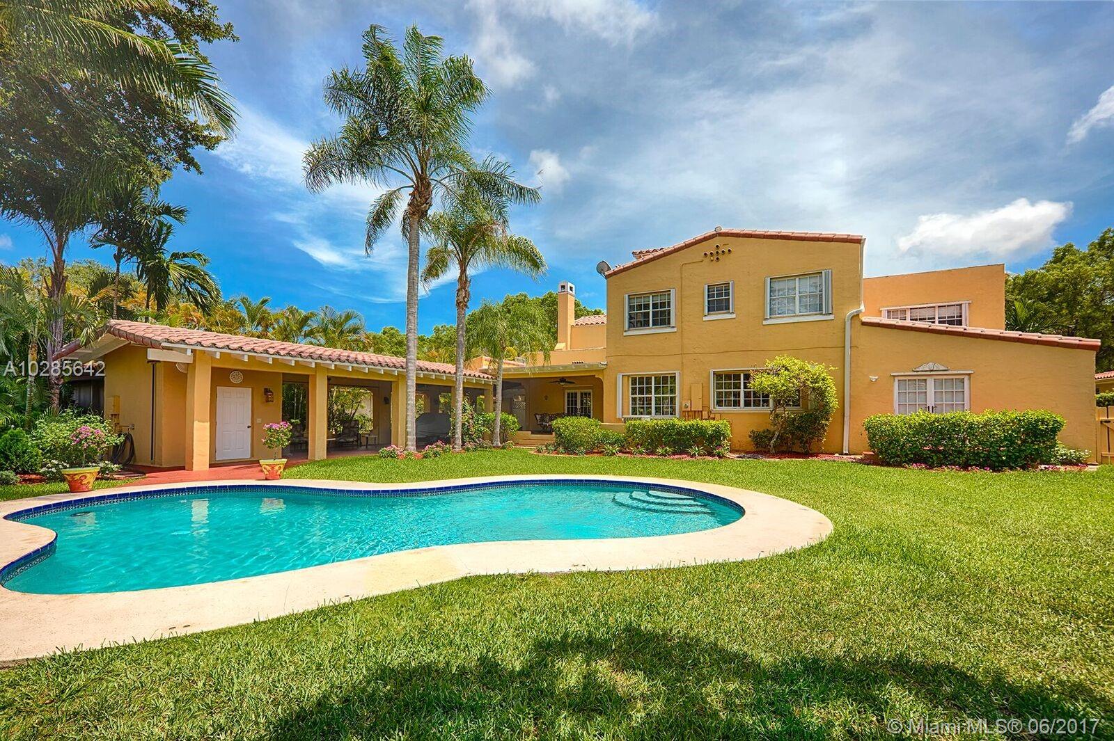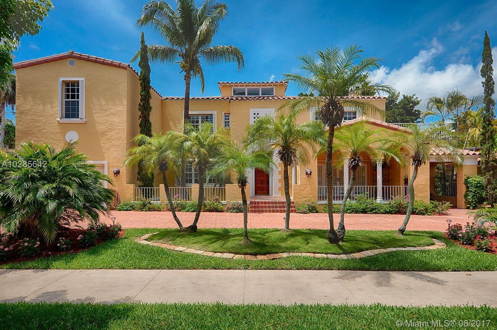 Historically Designated 1925 Landmark Estate. 5 bdrm, 4 bath+2 half baths. Magnificent front Façade-Bernini-Columned Porch. Enter to stunning Foyer, gorgeous original Patterned Tiled Floors. Functionally perfect Flr. Plan: 1st Flr- huge formal LR + DR, Fam Rm, Kit- Brkfast Rm, updated Powder Rm, & Laundry Rm. 2nd Flr: 2 Master Suites – 1 w/open-air Deck, 1 w/Sitting Rm, 3 additional Bdrms, + 3.5 updated baths. Large Garden features covered Patio, covered Loggia, Pool, & Cabana w/Full Bath.