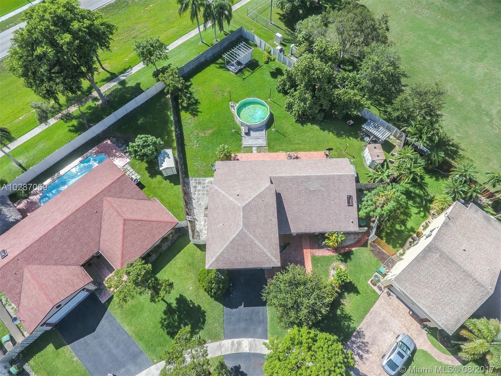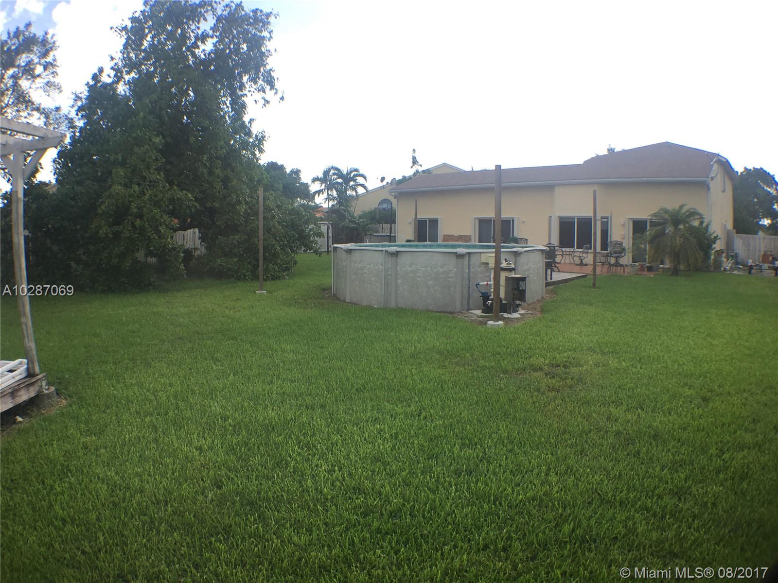 Come see a amazing two story home on a large corner lot. The lot is one of the biggest in community. Back yard completely fenced in with above ground pool with wood deck with several storage sheds and large 15x50 tiled patio floor.Front of house has tile porch with walkway and water fountain with real coral rock accents along front of house columns.House has new windows and doors with accordion hurricane shutters on 1st and second floor. House features inside large tile thru out with high vaulted ceilings with very open Living room and dinning and large Family room off kitchen. Kitchen has custom made cabinets and counter tops and features a large bay window with seating and storage.Master bedroom has new laminate wood floors and remodeled master bath with large shower with double shower