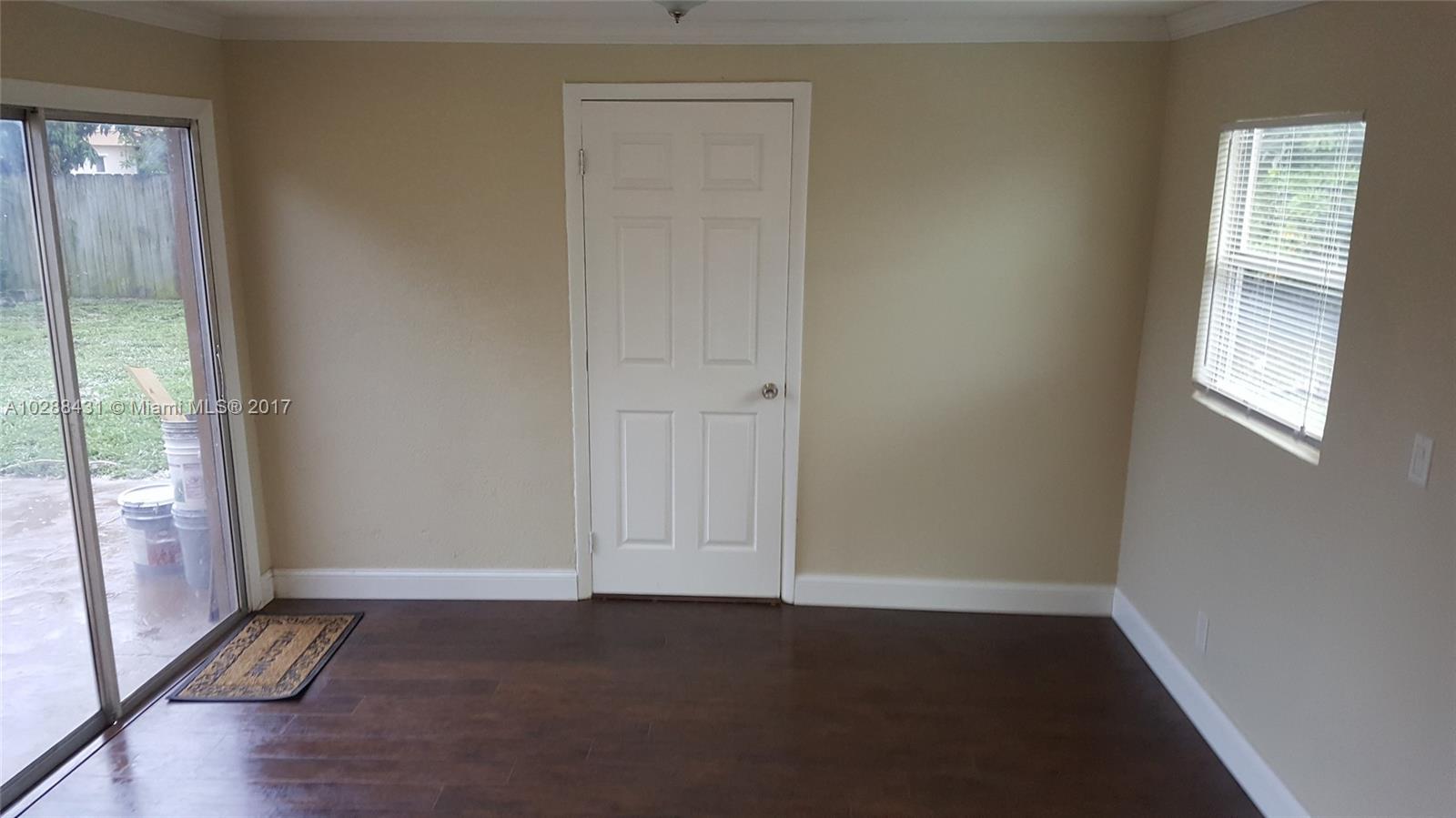 3 bedrooms 1 bath plus a family room completely remodel.New Flooring thru out the house except kitchen and laundry room (tiles). New dark stainless steel appliances.New bathroom,new fans,knock down On the wall and ceiling. Paint thru out inside and outside house, great neighbors. Close to hard rock,airport and hollywood beach. Don't let this one go by.
