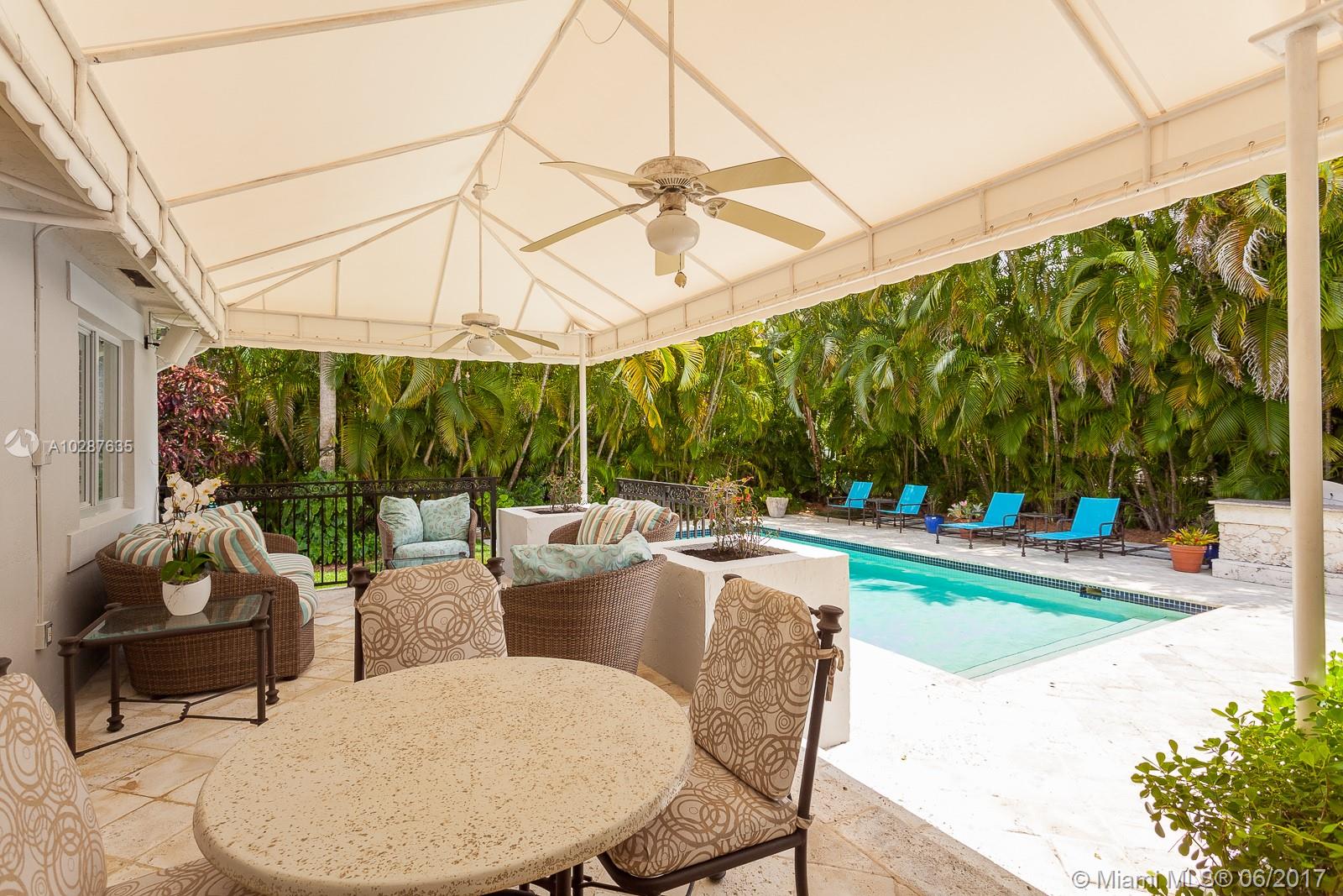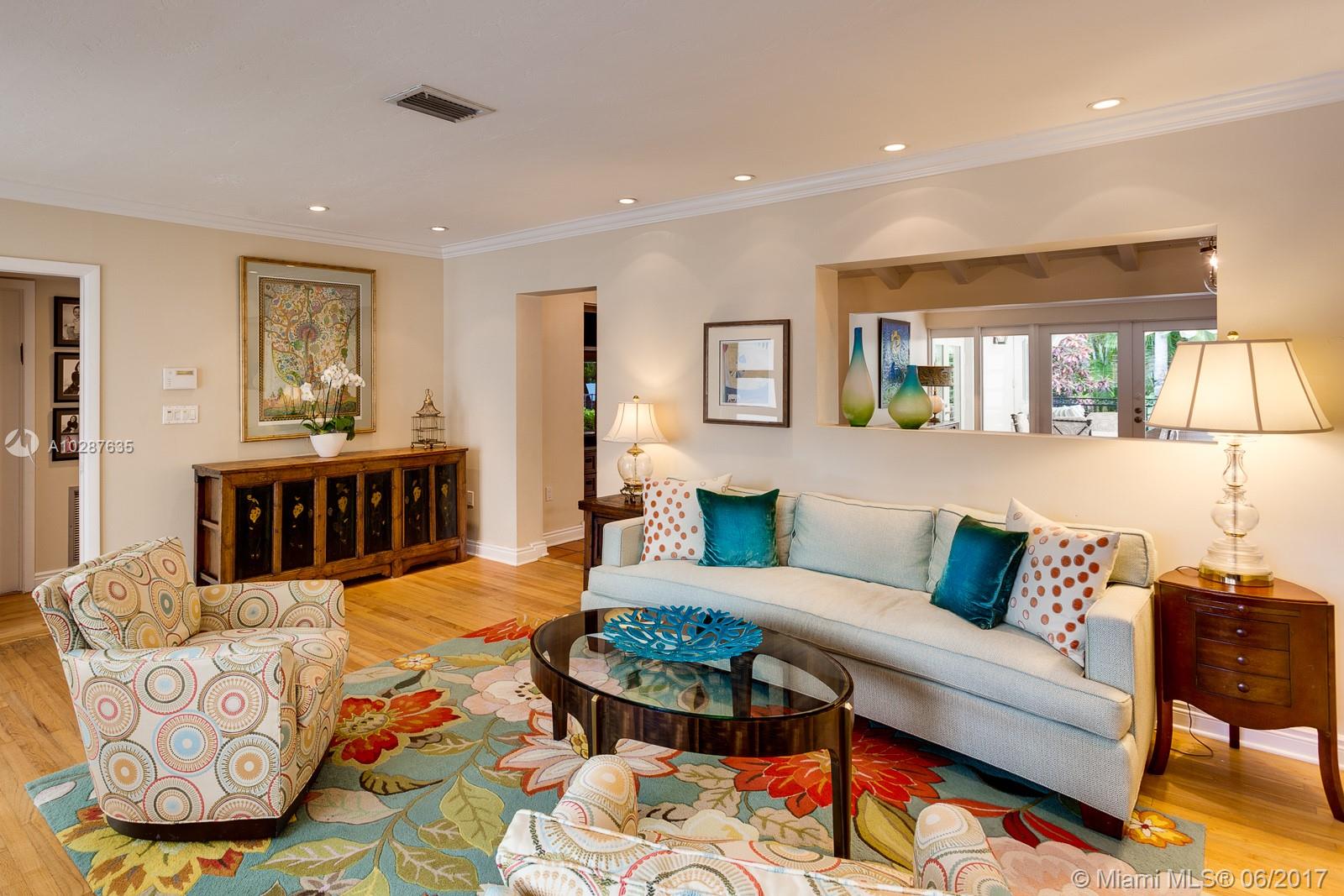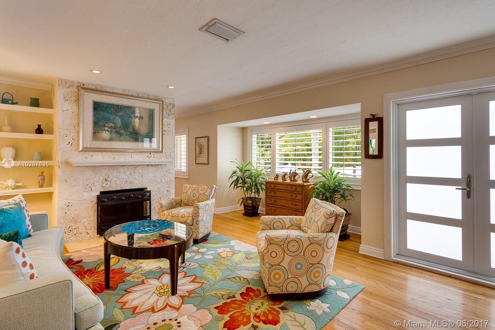 This home is a treasure. Located on one of Coral Gables most picturesque streets, this home exudes charm, grace and beauty. Beautifully updated, there is a formal living room with fireplace, formal dining room, family room adjacent to a kitchen with breakfast nook, spacious bedrooms & loads of storage. New roof in 2013, impact windows & door, California shutters, & two-car garage. One of the prettiest patio areas in Coral Gables complimented by a heated swimming pool. A Very Special Home.