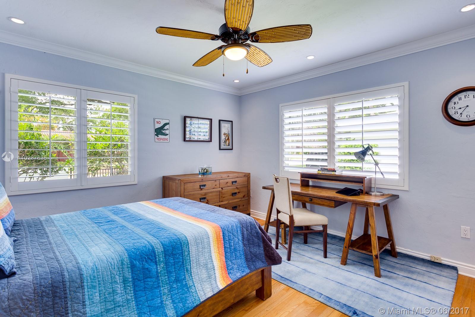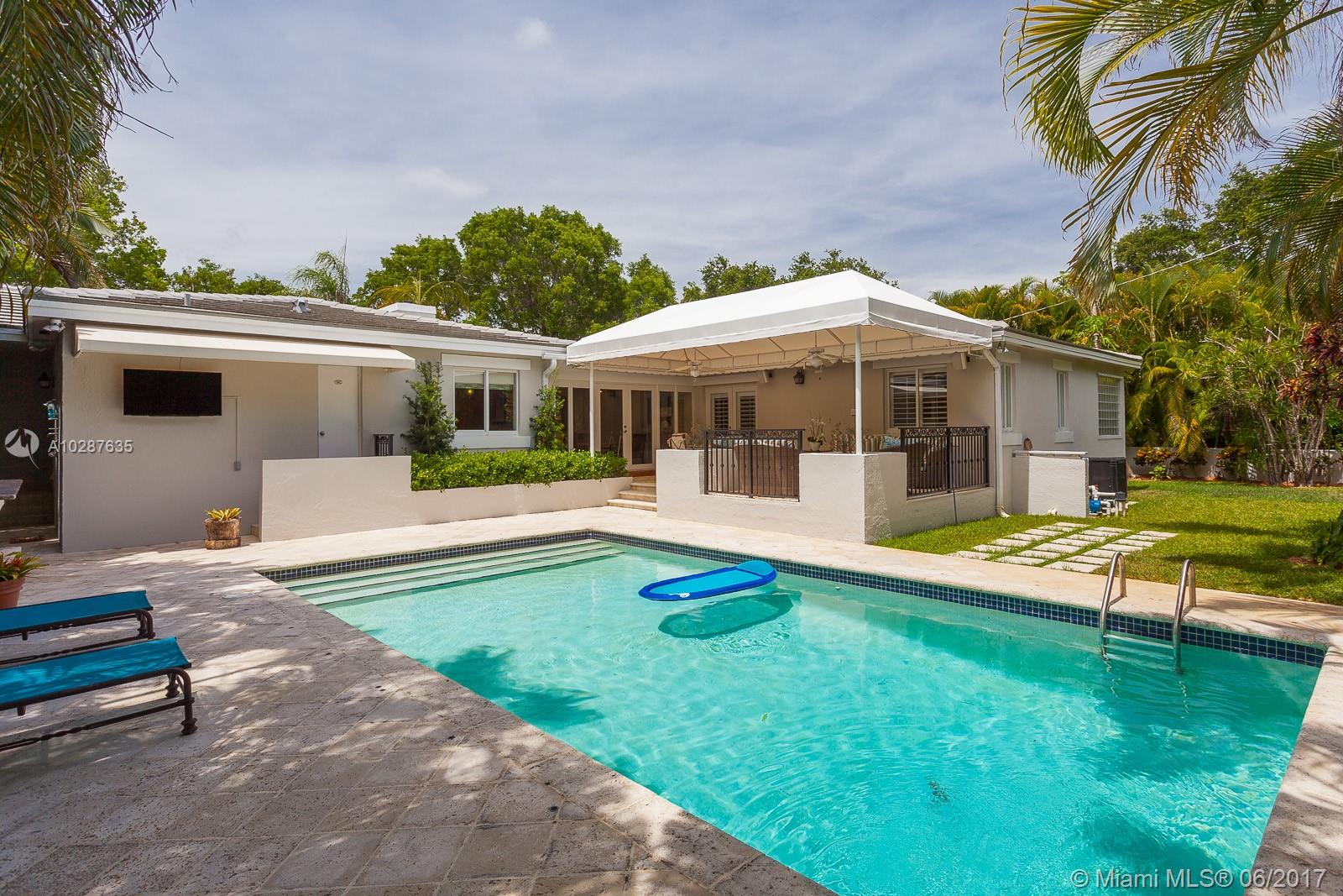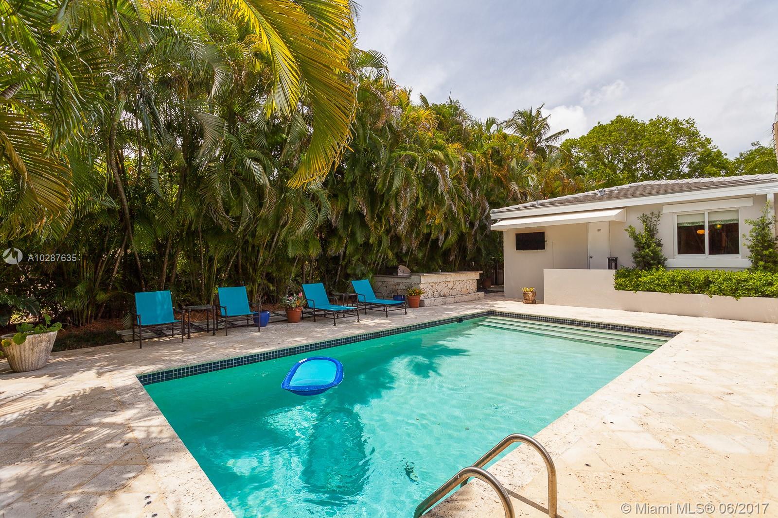 This home is a treasure. Located on one of Coral Gables most picturesque streets, this home exudes charm, grace and beauty. Beautifully updated, there is a formal living room with fireplace, formal dining room, family room adjacent to a kitchen with breakfast nook, spacious bedrooms & loads of storage. New roof in 2013, impact windows & door, California shutters, & two-car garage. One of the prettiest patio areas in Coral Gables complimented by a heated swimming pool. A Very Special Home.