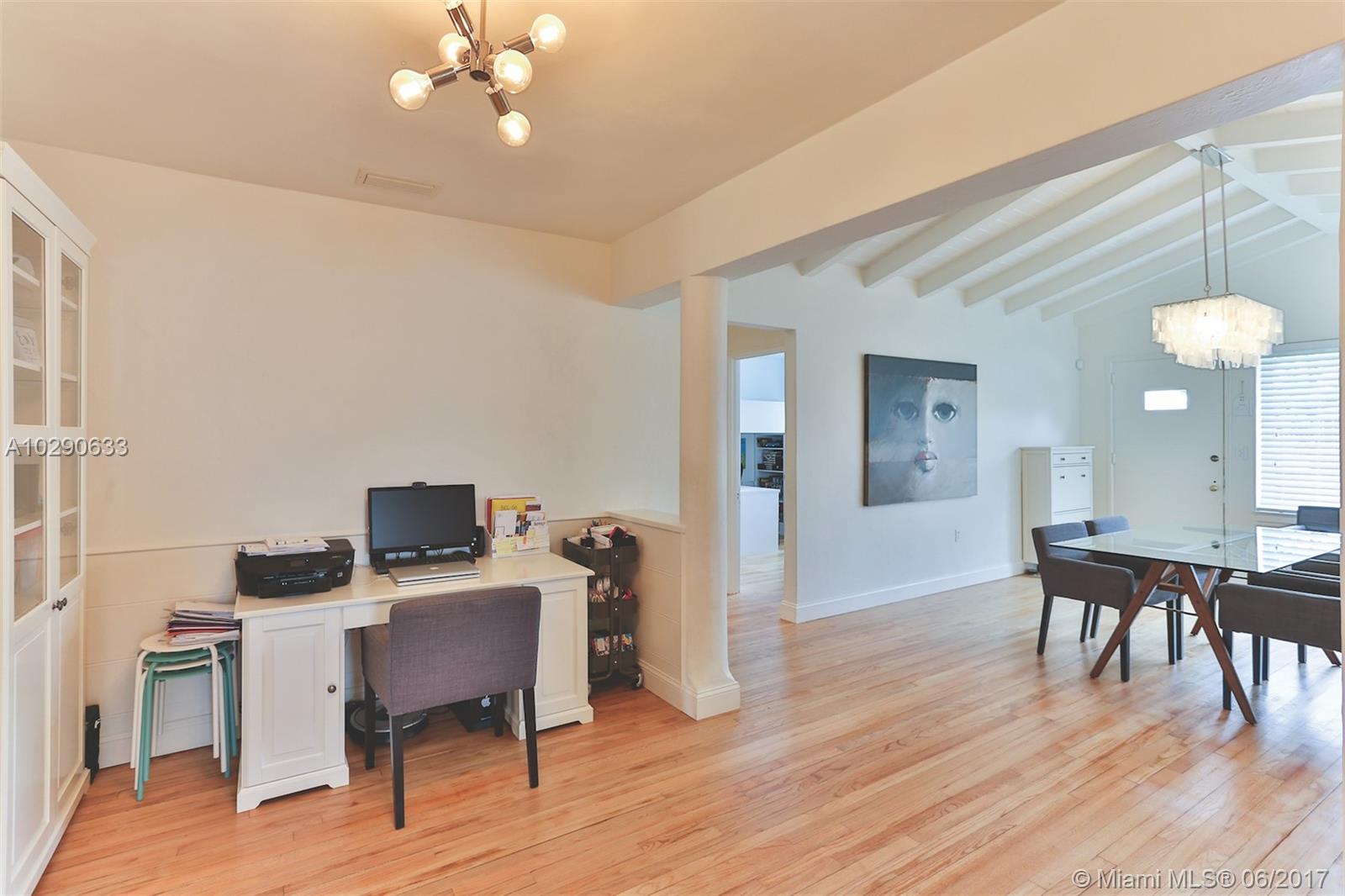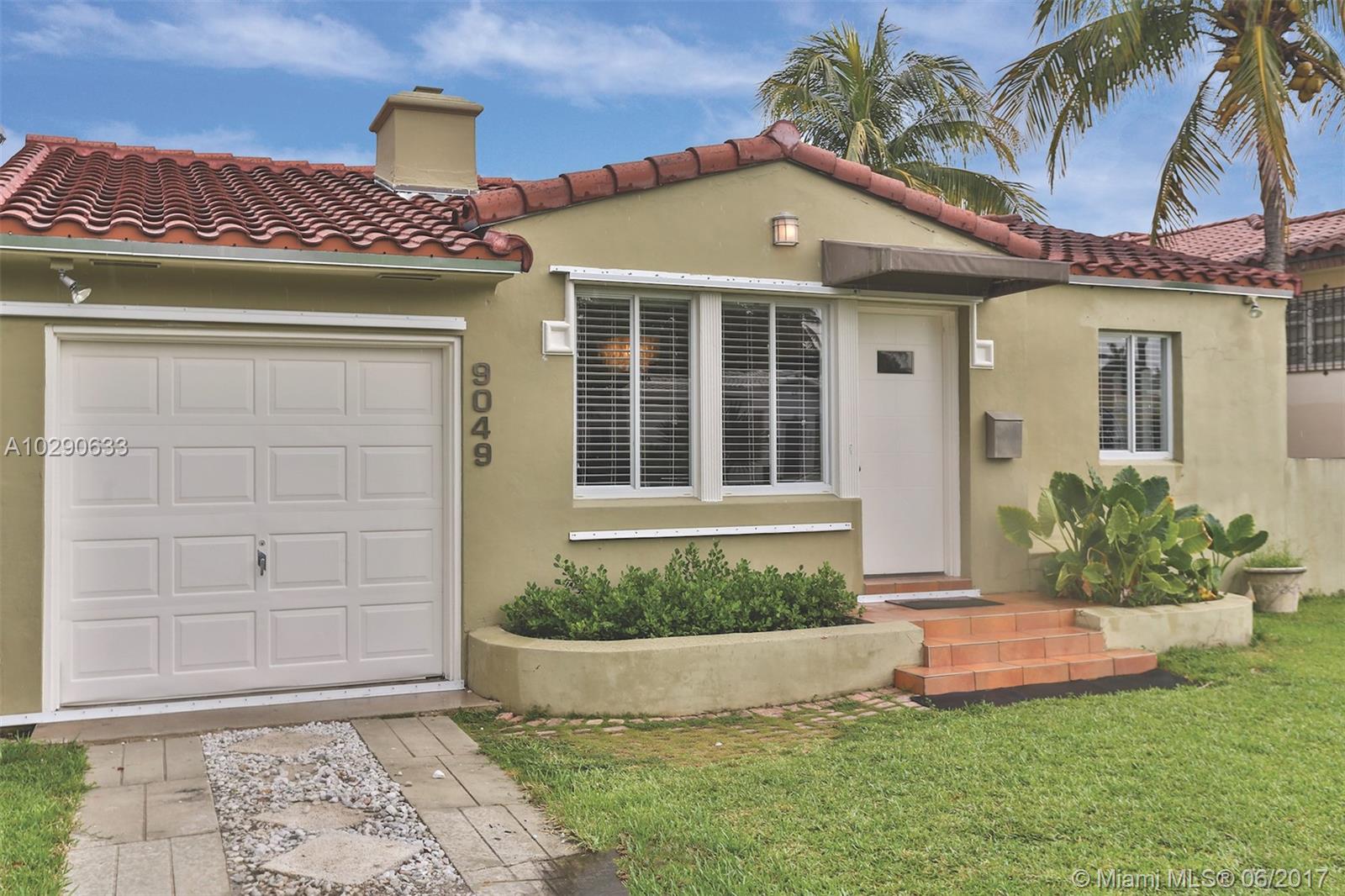 Art deco gem in the desirable Town of Surfside! This charming home has a great mix of original details and modern features, such as cathedral ceilings, lovely deco fireplace & wood floors, plus a newer tile roof and updated windows, electrical wiring, and water pipes. The house has 2 bedrooms and one bathroom, plus a large storage room (converted garage) that could be made into a 3rd bedroom and 2nd bathroom. All of the appliances in the home are only one year old. The huge, private backyard has a deck and an above-ground pool. Best of all, this house is just 3 blocks to the beach! Walk to the beach, Surfside community center/pool, Four Seasons Surf Club, restaurants & Bal Harbour Shops! Zoned for A rated Bay Harbor schools. Call today!