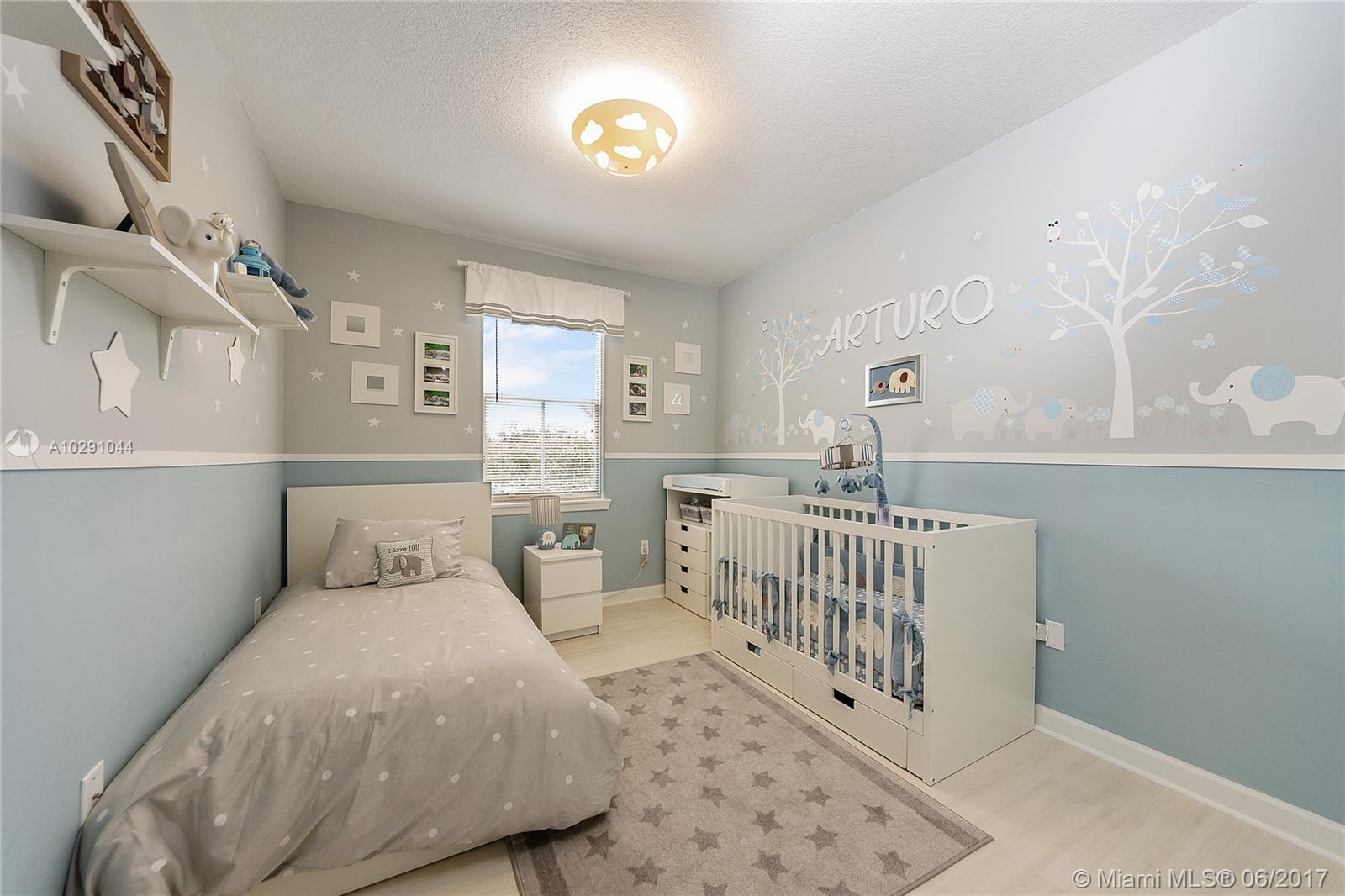 Mediterranean residence in Biarritz guard gate community of Doral, extensively remodeled= everything is new! Porcelain & wood floors, new doors, new stainless steel appliances, new kitchen & bathrooms, new central a/c. Freshly painted in/out, new glass stair railings, master suite w/ shower & jacuzzi tub. High ceiling, garage split and added children's play room. Low HOA fee $235/month. Includes guard gate 24/7, walled and landscaping