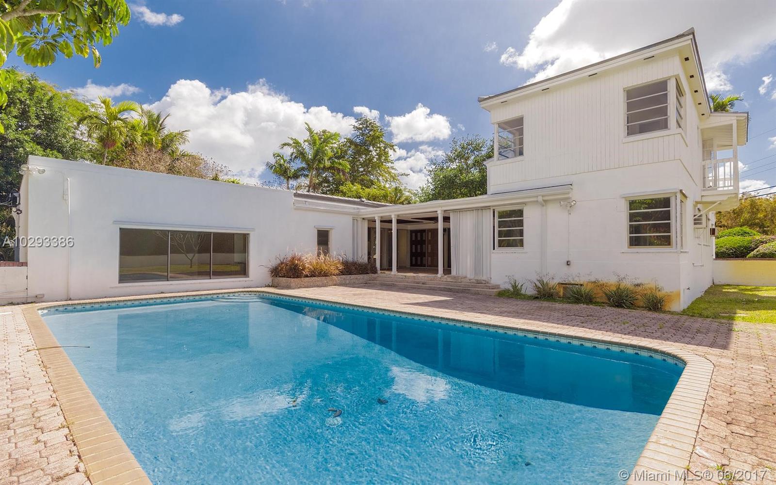 2 STORY MIAMI SHORES HOME, FIRST TIME ON THE MARKET IN APPROX. 30 YEARS. BIG WALLED LOT, POOL & PATIO. 5 BEDROOMS + OFFICE W/FULL BATH; 4.5 BATHS IN TOTAL. GARAGE WAS CONVERTED TO LARGE ENTERTAINING SPACE OVERLOOKING THE POOL. LAUNDRY & STORAGE ROOM WITH ½ BATH. GREAT SPLIT PLAN WITH PERFECT NANNY’S SUITE. THIS HOME NEEDS UPDATING. NEW TILE ROOF IN 2015. WOOD & TERRAZZO FLOORS. BIG OPEN LIVING SPACES GREAT FOR ENTERTAINING, WET-BAR. CENTRAL A/C.