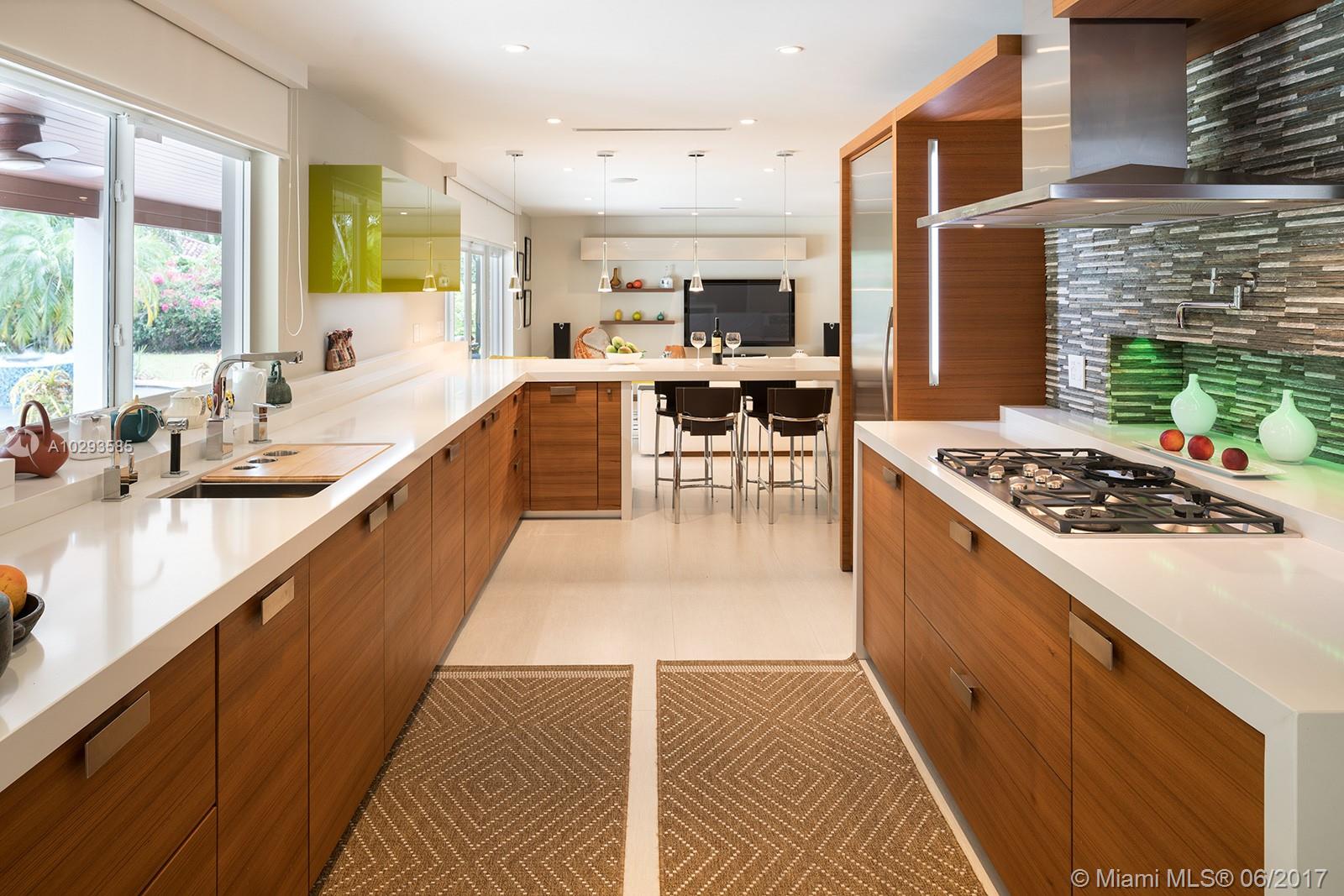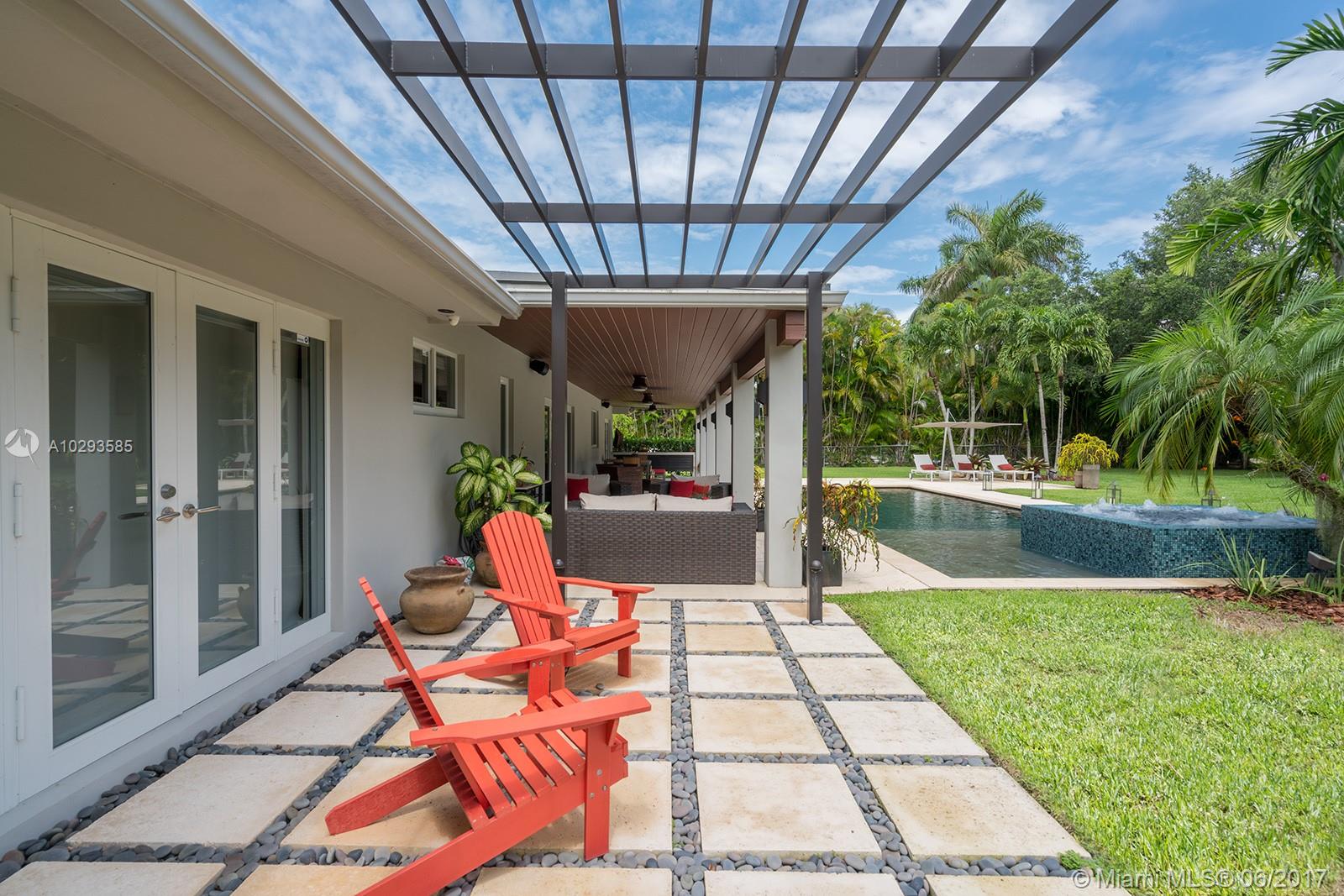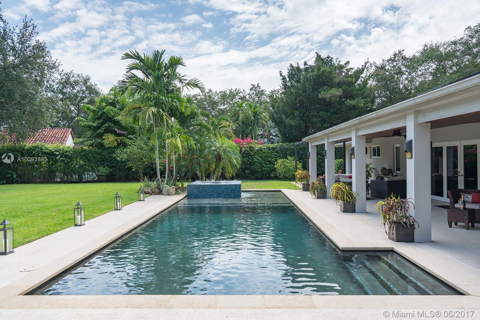 A spectacular redone North Pinecrest Beauty on a Resort Style deep acre estate. 2,544 Adj. SF. Enter this 3 bedroom, 2 bath home w/meticulous attention to details. Formal Liv Rm, formal Dining Rm, top of the line custom made Italian Kitchen w/Miele appliances & quartz counter tops. 50 bottle wine cellar w/bar, 48x24 Italian porcelain floors, Dual zoned Trane A/C system, Master Bath w/shower & bubble tub. Totally redone in 2013, high end lighting fixtures throughout, new electrical, new plumbing, 45 ft pool & spa with beach entry. The list goes on & on...