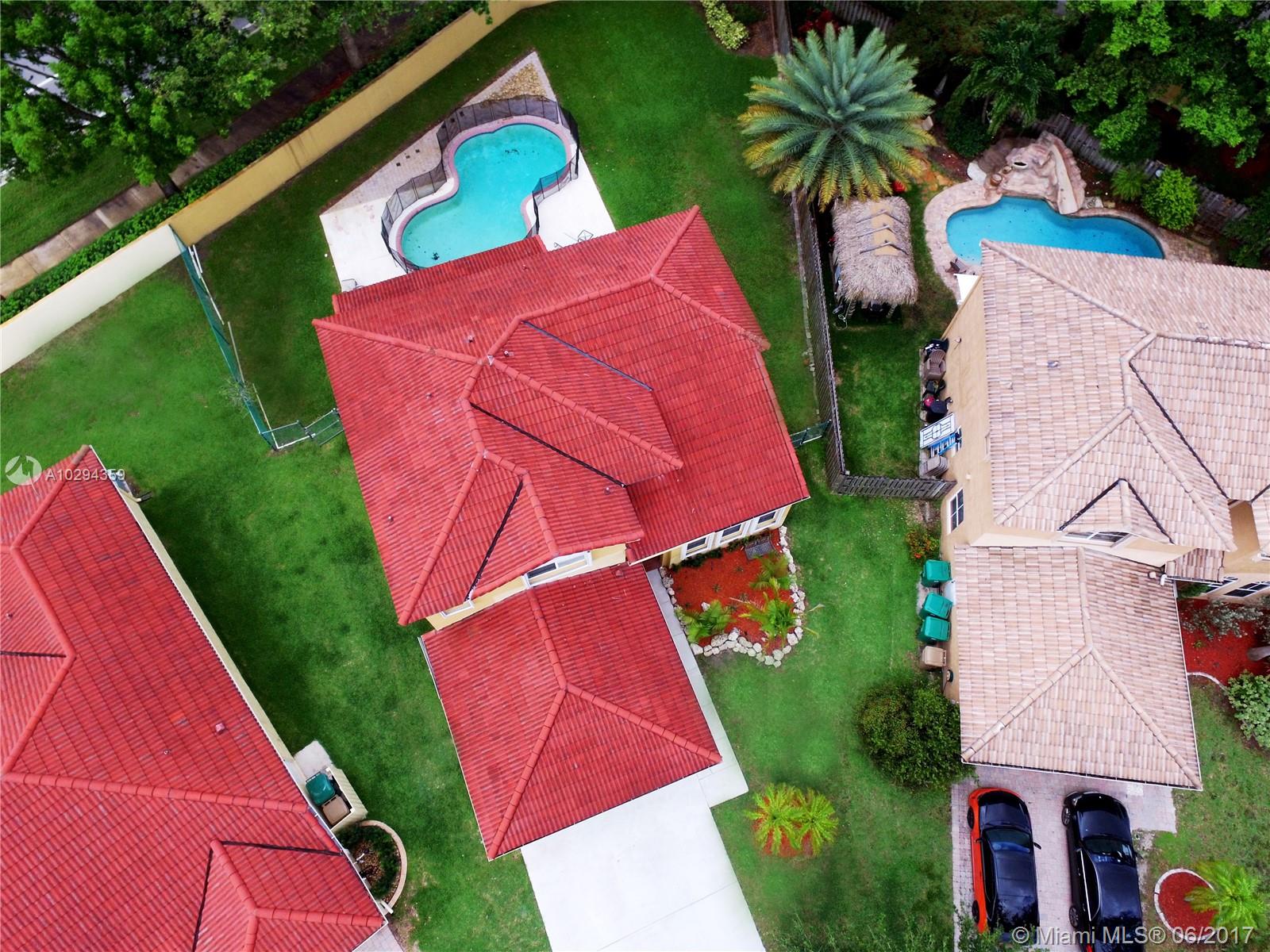 Gorgeous 4 Bedroom 3 Bathroom home in lovely Poinciana Parc. One full bedroom & bath down stairs, upgraded kitchen with breakfast nook, large master bedroom with tray ceiling and remodeled master bath, Tile throughout the house, accordion shutters with front impact window and french door. 2 car garage, huge covered patio($13,000 builders upgrade), 1/4 acre pie shaped lot and fully fenced in backyard. Great pool and patio area to entertain. AC's 2 years. Excellent Davie schools, close to shopping + highways, and security of a 24 hr manned guard gate. Association cuts front yard