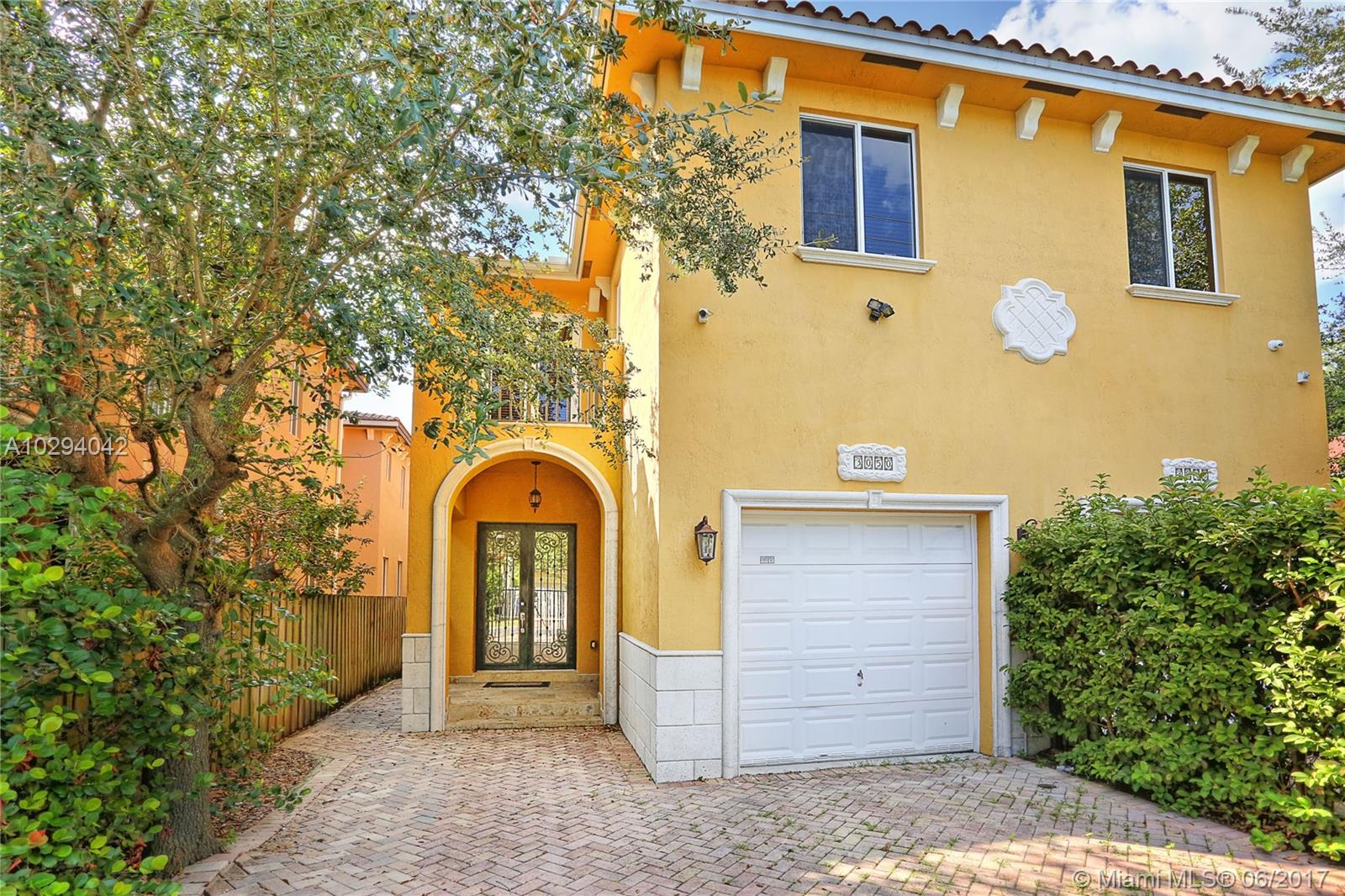 Gated townhome close proximity to all of the Groves finest amenities including parks, marinas, restaurants, shopping, entertainment and more. Spacious and light filled two-story layout. Kitchen features stainless steel appliances with beautiful wood cabinets and granite countertops. Family room and kitchen have views of the garden. Formal dining room includes a wet bar with built-in cabinetry and granite countertops. Master suite has a private balcony and en suite bathroom with marble surround separate tub and shower. Home has one car garage and additional parking behind the gate. Central location with easy access to Coconut Grove, Coral Gables, Downtown, South Miami and beautiful beaches.