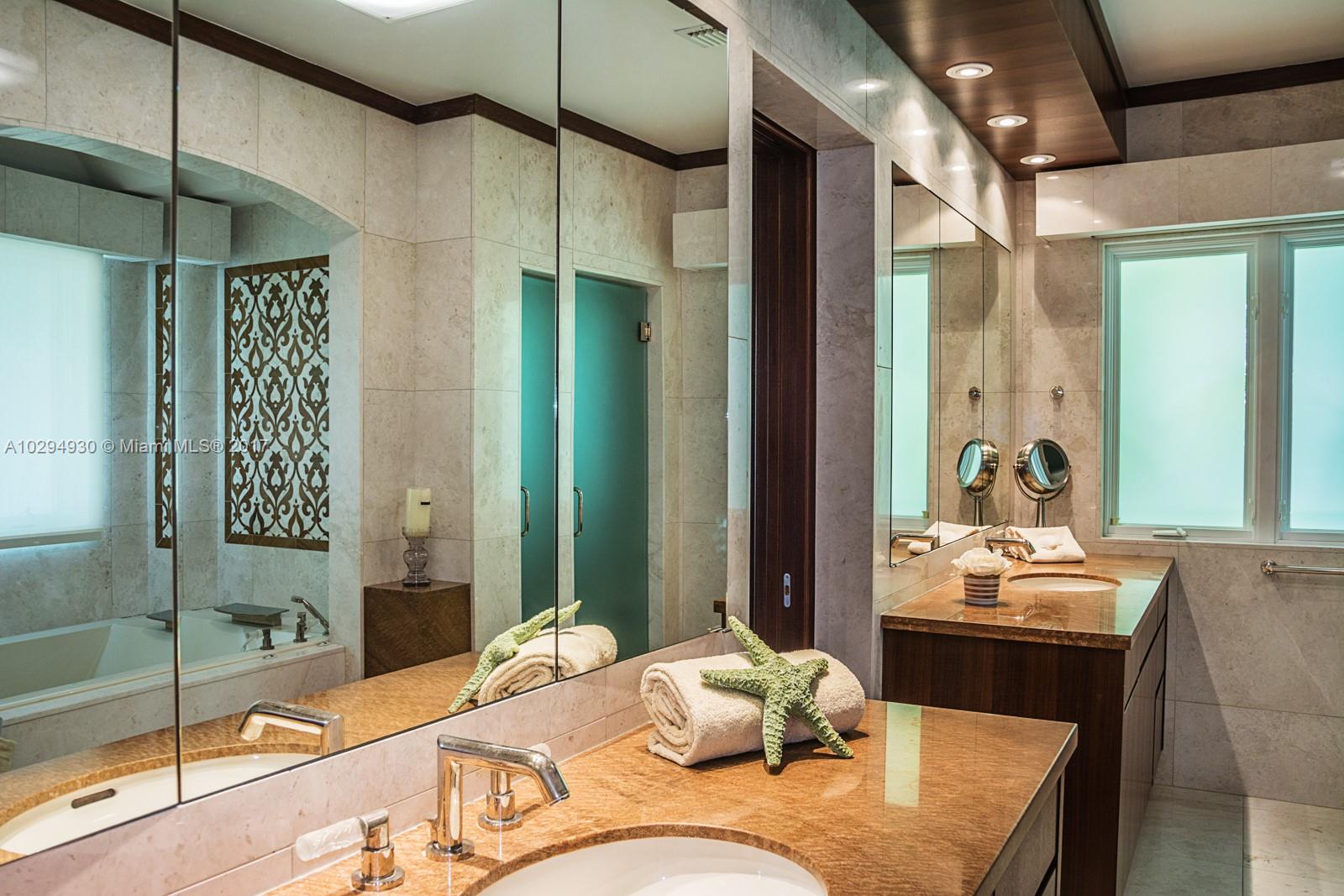 Stunning estate, situated on over 1/2 acre in The Moorings, an exclusive guard-gated bay front community in Coconut Grove. Total renovation in 2009 w/the finest finishes & fixtures throughout. Expansive light-filled rooms w/inlaid wood & stone floors, overlook lush tropical gardens & pool designed by award-winning Fernando Wong. Spectacular state-of-the-art kitchen w/ mahogany cabinetry & large center island. Separate guest house & gym. Community dock/ Riparian rights & close to the Grove village.