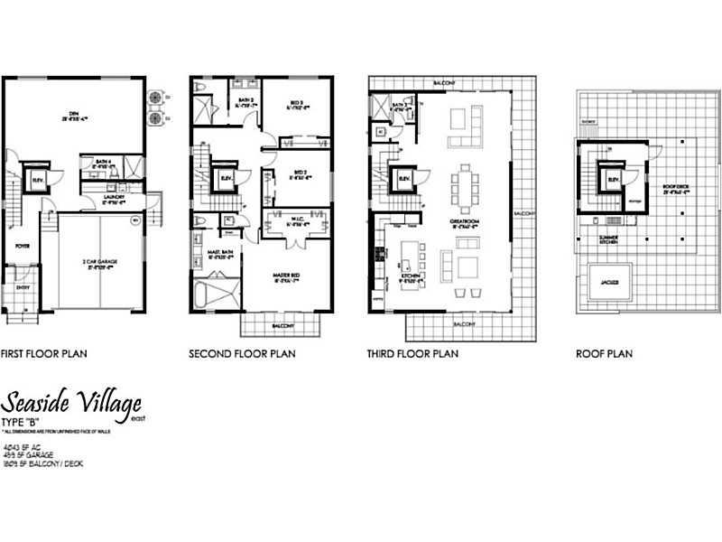 Seaside Village is a boutique development of 8 single family homes, 15 condo units & marina, located on North Beach in beautiful Hollywood, FL. Residents enjoy a semi private beach, private marina w/ocean access, and elevated promenade along the Intracoastal. This single family home has 3, 4, and 5 bedroom configurations. 4000+ sq.ft. under air plus 1300 sq ft rooftop terrace/spa/kitchen. Interior elevator. 2 car garage. Designer appliances, custom finishes.