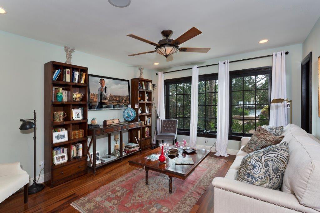 Artistically renovated home with Intracoastal views on very wide canal. Privacy hedges and gated entry to courtyard pool. Impact glass doors & windows throughout, Jerusalem stone flooring, Crestron system & composite dock. Island kitchen with natural gas cooking, custom designed tile, and stainless steel appliances. Master suite with hardwood floors and master bath finished with onyx. Oversized 1/3 acre lot. Walk to the beach and Birch State Park. Loggia has summer kitchen and Chicago brick patio.