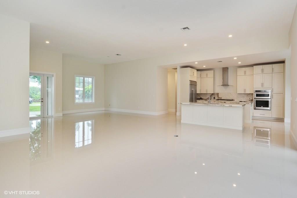 Fabulous new construction home ready for immediate occupancy and enviably located in the heart of sought-after Coral Ridge neighborhood! Awesome one-story design with 12' ceilings in living areas, sleek, high-gloss porcelain flooring throughout, large gourmet kitchen with designer granite & Onyx counters, high-end appliances & breakfast bar, all opening up to huge living/great room overlooking gorgeous pool/patio area. Completed and ready move right in!