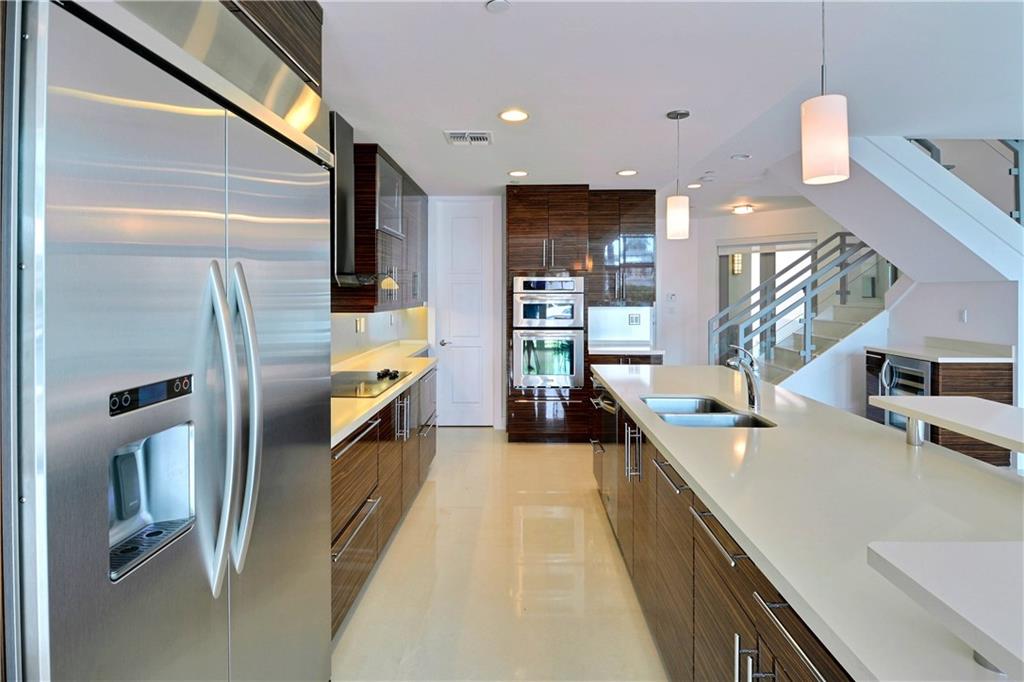Deep waterfront town home inspired by contemporary architecture. Private dock for a boat up to 35' & fully equipped power station. Unparalleled standards of luxury are exhibited throughout with the use of limestone & wood flooring, large open culinary kitchen with Zebra wood cabinetry, upgraded stainless steel appliances & Silestone countertops. Bright open floor plan, 2 story great room, elevator, large 2nd floor loft area, multiple balconies, roof top terrace & waterside patio. sq. ft. from developer.