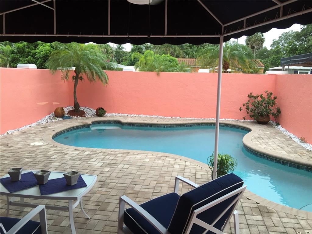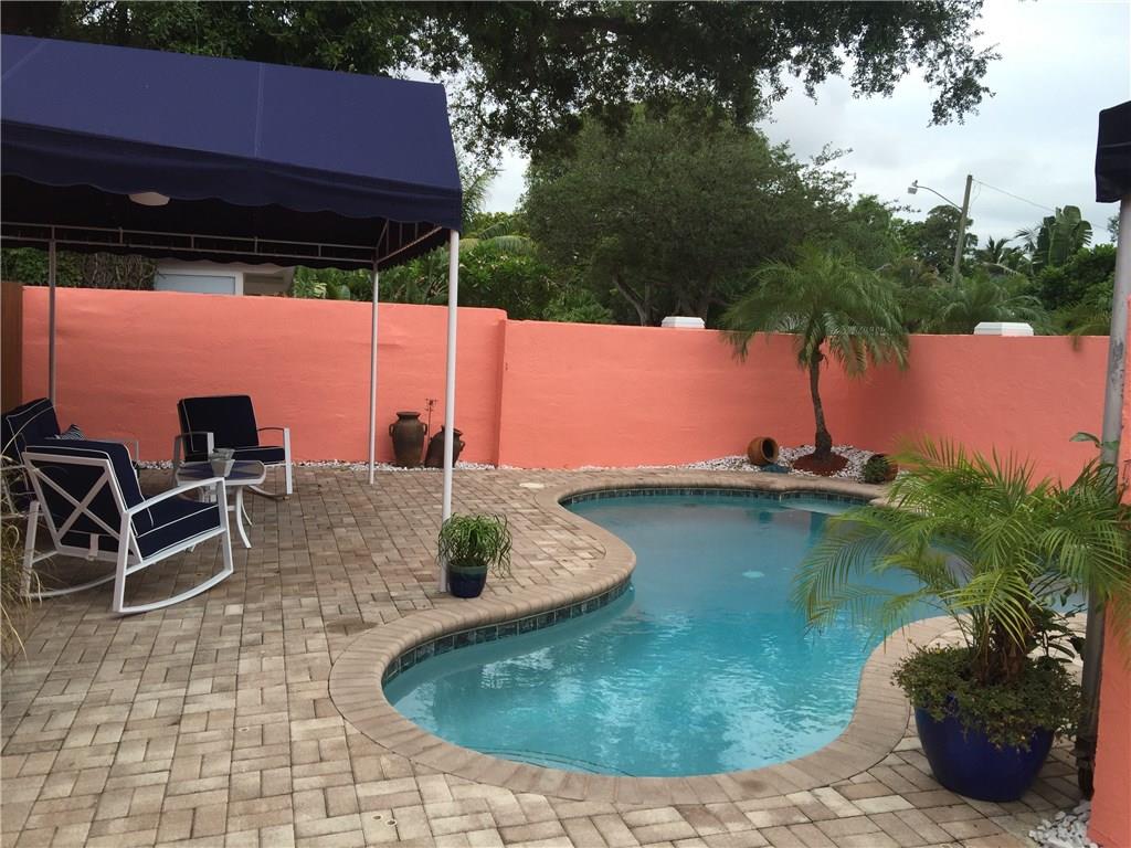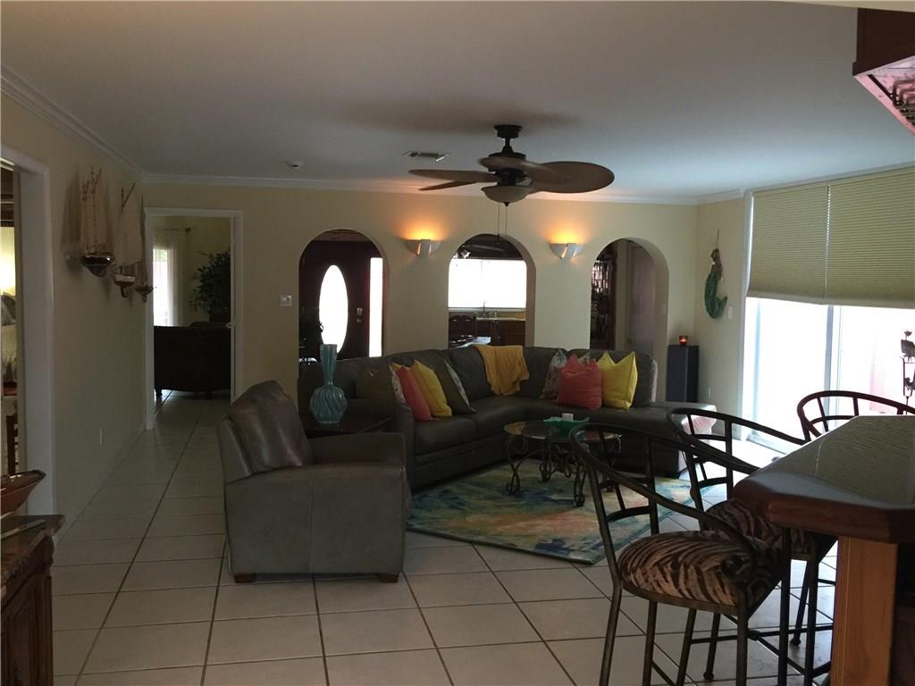 Beautifully updated rustic Mediterranearn style home~ PRIVATE exterior wall for total privacy. Picasso inspired heated saltwater pool. New diamond bright, new Sunbrella awnings, new interior/exterior paint, crown molding, beautiful redwood exposed beams. New ceiling fans, new laundry room, new appliances, professionally landscaped. New deck w/50ft dock & seawall, NO fixed bridges for your sailing yacht's pleasure. Home warranty offered. 4 point inspection & termite insurance. Ready to move in.