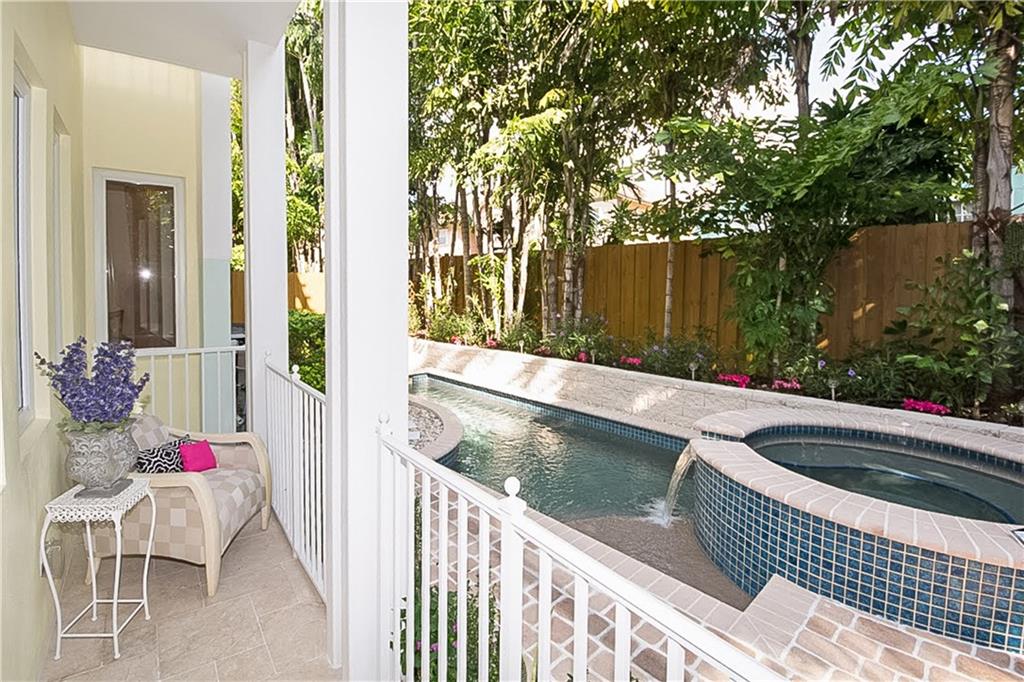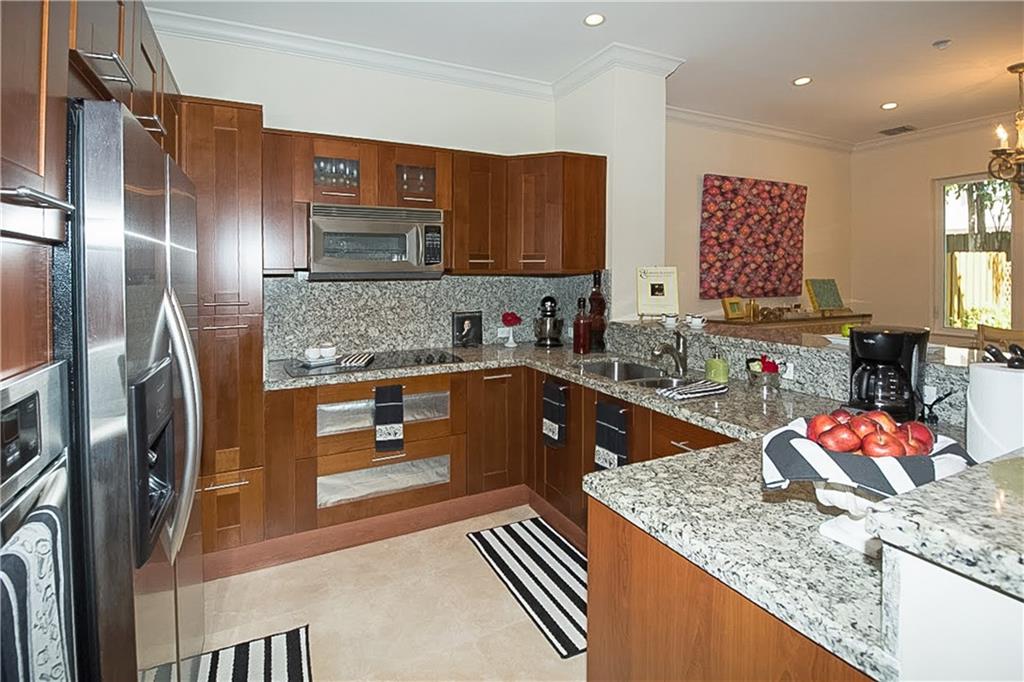 Elegance and grace best describe this lovely townhome with elevator in a secluded east corner location with private patio/pool. Large windows and romantic balconies overlook lush tropical landscape, and streams of natural light fill all of its rooms. Nothing can compare to its luxury and comfort. Features include 2 car garage, huge roof top deck (in addition to 2nd level balconies,) interior wood floors, Saturnian marble in baths, balconies, and deck, two zone a/c. Open, spacious, sunny Florida living!