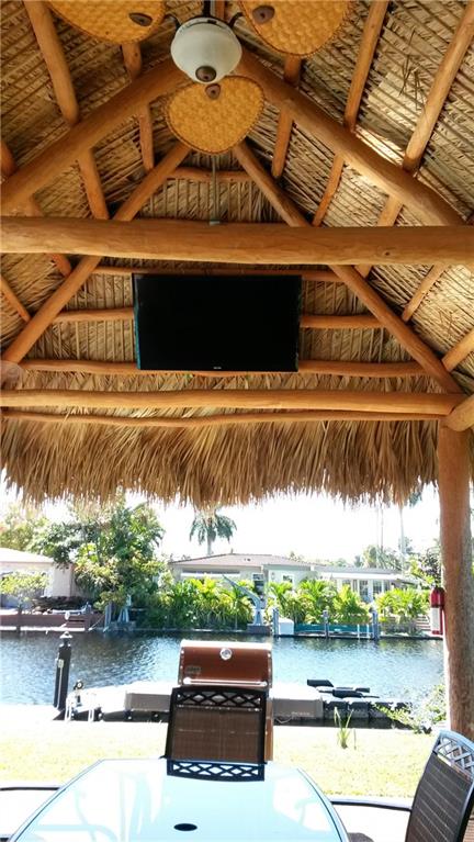 This home has been fully remodeled with many exciting upgrades. Brand new full house generator, dock with water & 30 amp service, new commercial ice machine, salt system for the pool, & beautiful cypress log tiki hut. LED lighting along seawall. This outdoor entertainment area not only offers you wonderful spot to sit by the pool but it includes a large screen TV and a full Bose surround sound system. Kitchen and baths have been upgraded as well as electrical panels inside an out. Floating dock excluded.