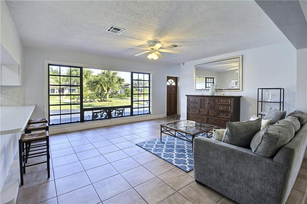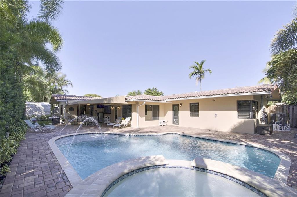 Coral Ridge pool home in the "A" rated Bayview School District. Open floor plan with updated kitchen & new stainless appliances. 2 car garage w/impact garage door.Split bedroom plan.Large inside laundry room.Additional outdoor living with newer heated, saltwater pool & hot tub -LED lights, sun shelf entry, umbrella holder, water features. Relax in the shade under the awning and watch TV. Outdoor shower, cabana bath to pool, large additional side yard. Home protected with impact windows/doors and shutters.