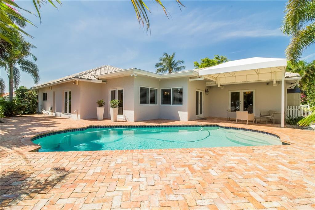 Just reduced $100k! Brilliantly redesigned waterfront home located 3rd lot from Intracoastal waterway. 4 bed/4 bath has been totally remodeled with stunning finishes. Chef's kitchen and Butler pantry by The Kitchenworks with top of the line appliances and leathered marble countertops. Balanced floorplan allows an abundance of light throughout, 9 ft ceilings, marble and hardwood flooring, all impact windows, french doors open to sundrenched pool area, lush tropical landscaping & fully equipped 85 ft dock.