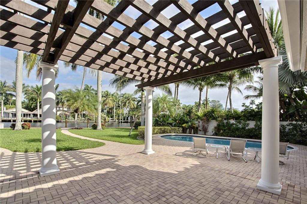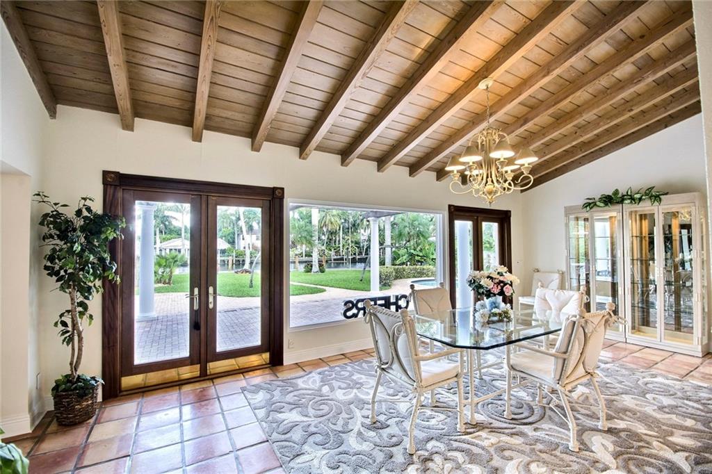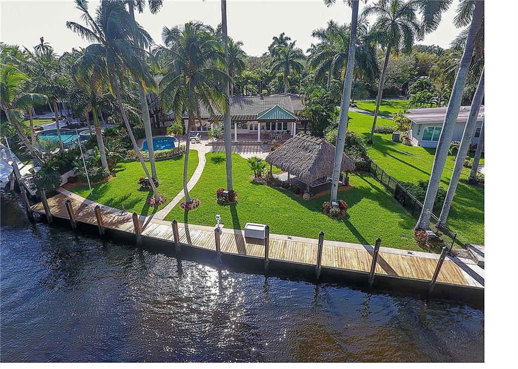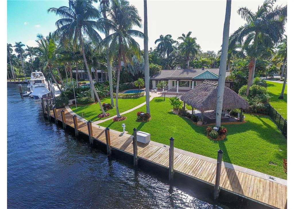 Breathtaking waterway views of the New River & a daily parade of yachts from almost every room. Spacious 1 story ranch home, gated entry with tremendous parking & outstanding curb appeal. Lush tropical landscaping, a soaring covered loggia, waterside tiki hut & oversized backyard & salt water pool overlook the river. Ideal for the avid boater with an expansive dock & power station. Volume/vaulted ceilings with a bright open floor plan. Large shed & shared generator. Sq ft. from bcpa believed accurate.