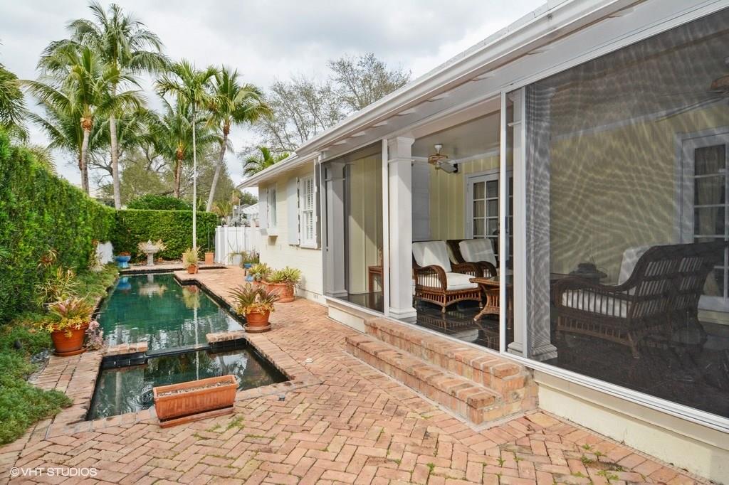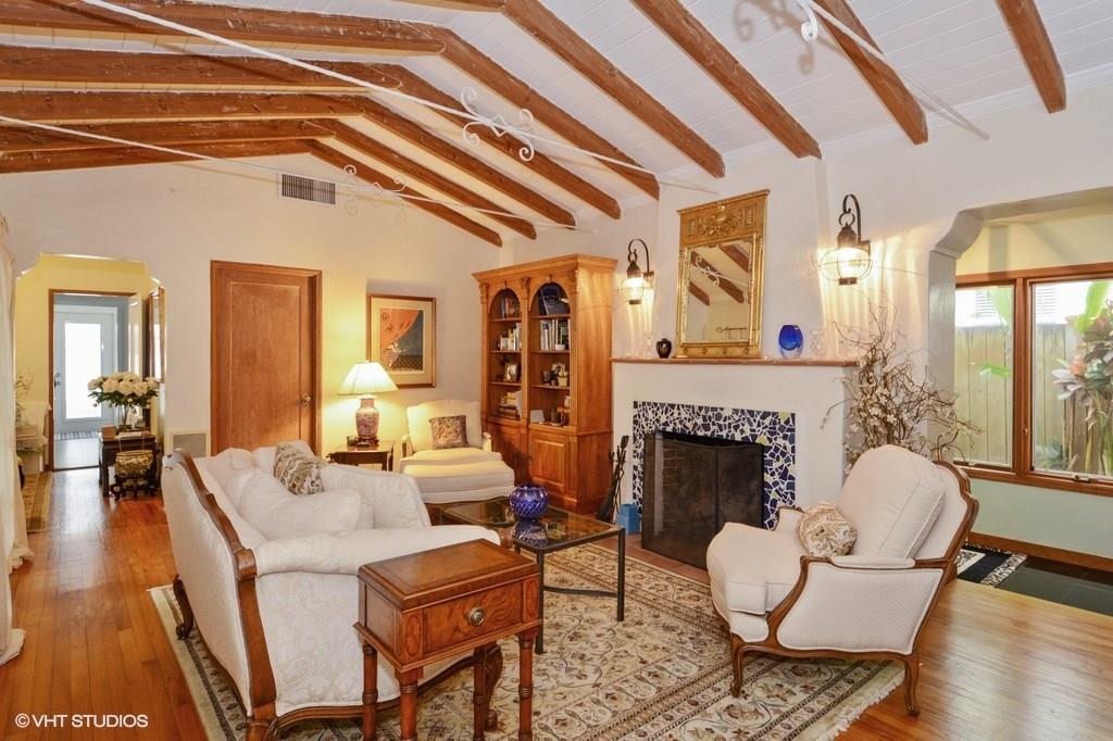 Classic 1930's Rio Vista charmer, corner lot with double drive and private pool area. This 3 bedroom/3 bath home features hardwood floors throughout, vaulted ceilings with architectural detail, wood burning fireplace and a modern, updated chefs kitchen. Lots of french doors and windows with plantation shutters enchance the rooms, which have views of the lap pool and spa surrounded by rich Chicago brick. This is a preferred east location, not on a thru street, surrounded by lovely residences.