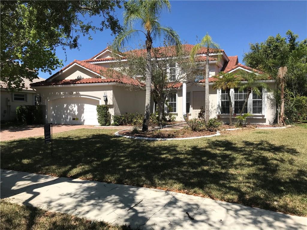 LOWEST PRICED with Amazing panoramic views to GOLF, WATER and screened in patio-POOL.5 Bedroom & 3.1/2 bath home is located in WHCC/GRAND OAKS & has ceramic flooring in living area, high ceilings in living & formal dinning room, quartz kitchen counter top with custom wood cabinets, master plus one bedroom & 2 .5 bathrooms down and 3 bedrooms and 1 bathroom up, 6 CAR paver drive and walkway, paver rear patio, NEWER CLAY ROOF,A/C,WATER HEATER,ACCORDION SHUTTERS. Floor credit $5K BArooms dated NEEDS WORK