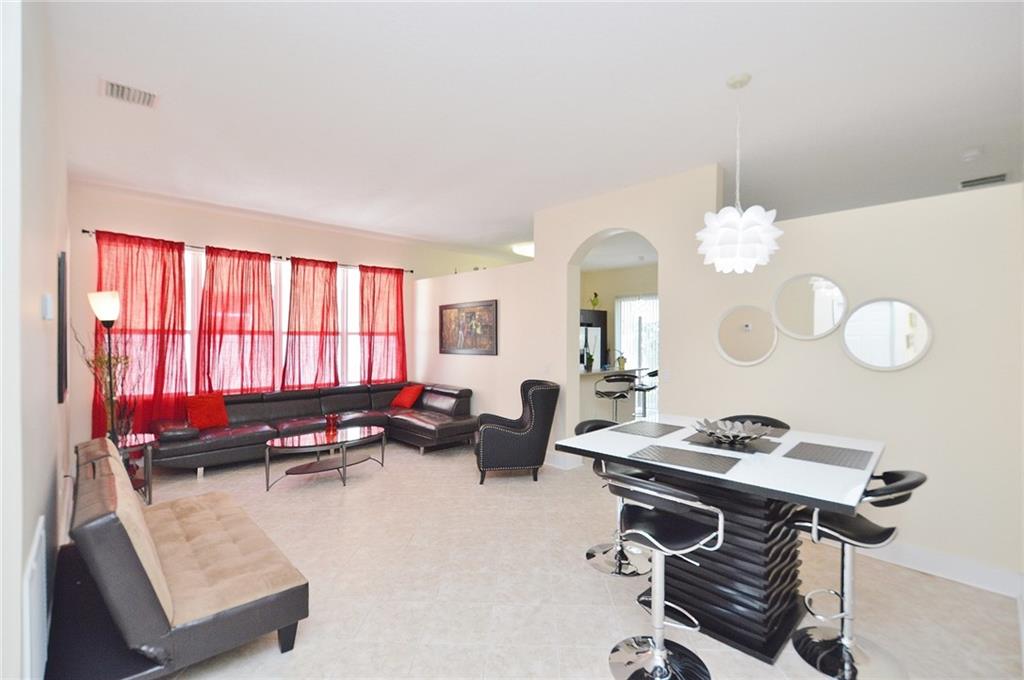 Very Light & Bright OPEN floor plan. Approx 1900 sq under AC. Tile floors thru-out living area. All br's have laminate. Remodeled baths and kitchen with S/S appl, Corian counter tops w/snack bar opens into family room. Master bath has large tub w/separate shower. Fresh paint inside/out and newly professionally landscaped/private fenced backyard. Pavered Drive/Patio. 4th br is DEN. Gated comm with exercise room, tennis, clubhouse & community pool. Home Parnters of America Eligible to Lease Purchase.