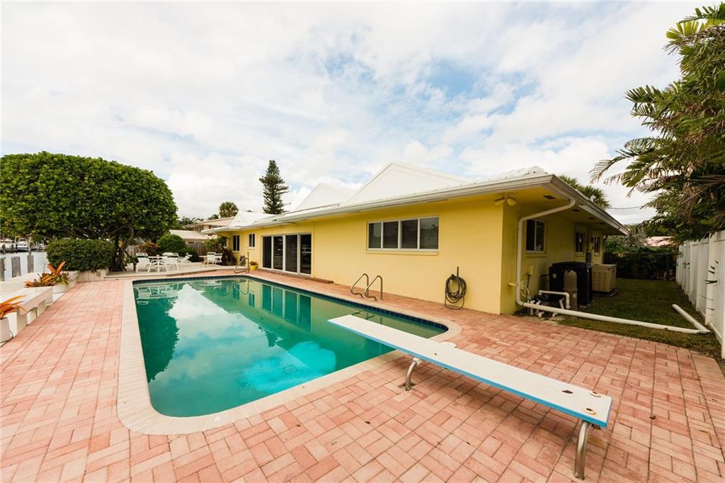 Well maintained & spacious 6 bedroom waterfront home located in Coral Ridge. Featuring 100' on wide canal (120' across), no fixed bridges-ocean access. Equipped with full house generator, dual zoned A/C, impact windows, large 40x15 heated pool, durable composite decking, batter pilings, minimal landscaping maintenance required, 2 car garage, cedar closet, kitchen quartz counter top, dinette area, 10.5 foot ceilings, attic space, wood burning fireplace.Located in A rated Bayview elementary school district.