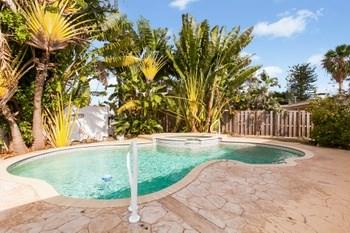 Back on the market. Buyers unable to meet financing expectations. Home has been appraised, inspected AND TITLE WORK IS ALL DONE. Ready to close. It's situated on a large corner lot with paved circular driveway and hard to find 2 car garage. Open floor plan leads to a private patio and pool area. Sought after location is minutes away from beaches, shopping, restaurants, malls and new state of the art fitness center. Two masters makes it ideal for Airb&b or live in it. See it today.
