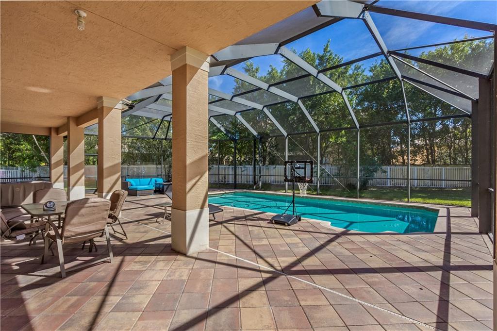 SPACIOUS 6BR/4BA cul-de-sac home in DESIRABLE Sunset Lakes! 6th BR used as LOFT with private bath overlooking main living areas. Floorplan features 2-story formal living & dining rooms with lots of natural light. Enjoy large open kitchen to family room. One bedroom/full bath downstairs. Great for entertaining! Master suite upstairs. Beautiful covered patio with screened-in pool and hot tub! Yard fully fenced! Home FRESHLY painted & NEW carpet! Community has resort-style amenities with low HOA dues!