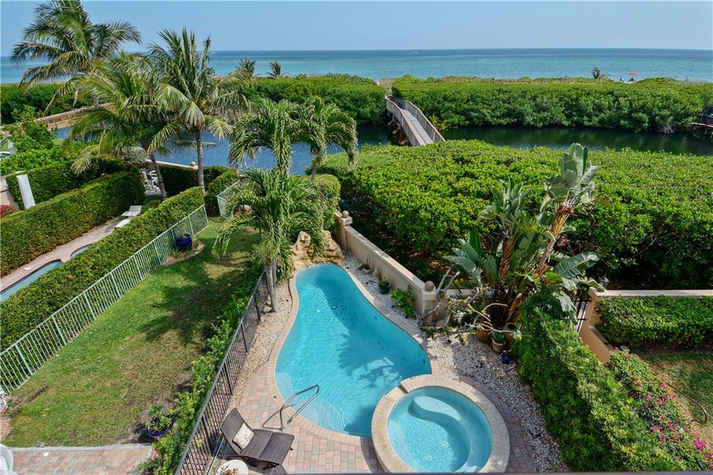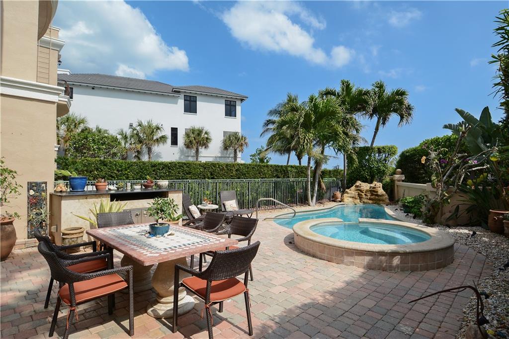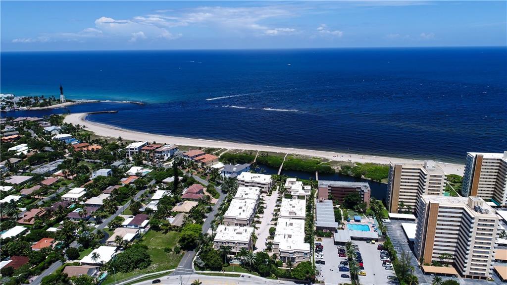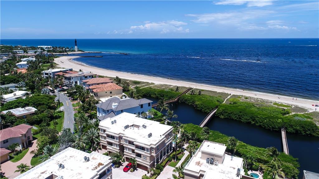 Light, bright & beautiful 3-story townhome in Hillsboro Bay by the Sea. Stunning views of the Hillsboro Inlet, lighthouse and beach. Gourmet kitchen w/Viking & Miele appliances & accent lighting. Expansive 3rd floor master suite w/fantastic ocean view, 2 private terraces, huge custom walk-in closet, dual shower heads and Jacuzzi tub. Additional features include elevator, plantation shutters, Crestron interface, 2 A/C units. Great for entertaining, custom built in-bar, outdoor bar large heated pool & spa.