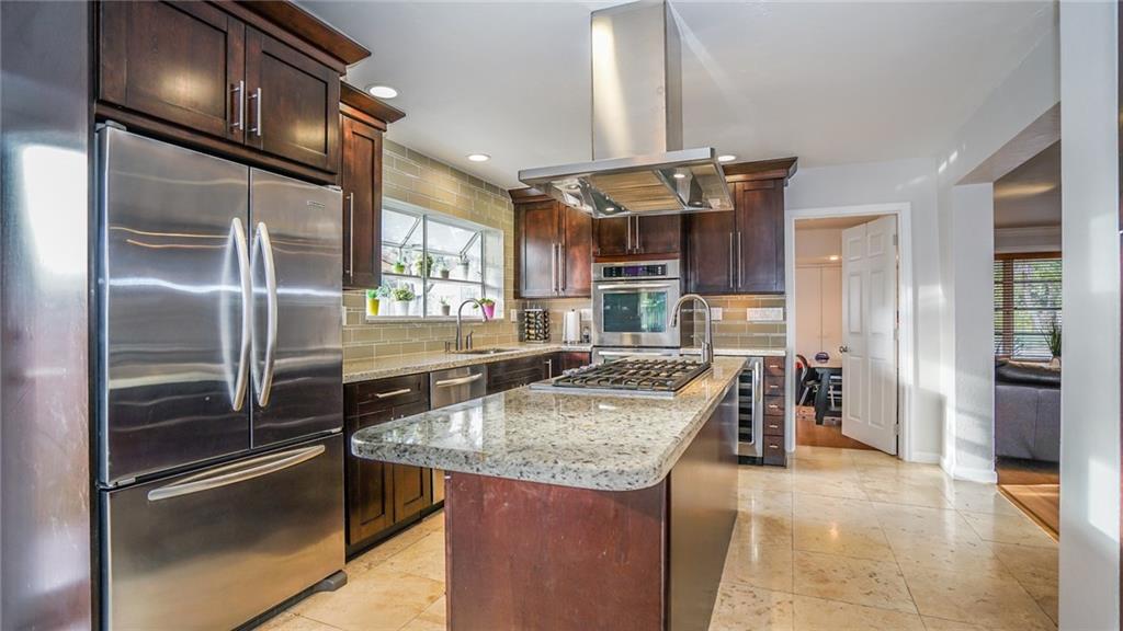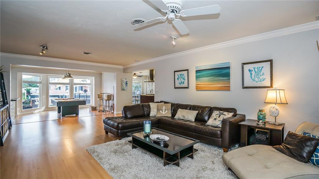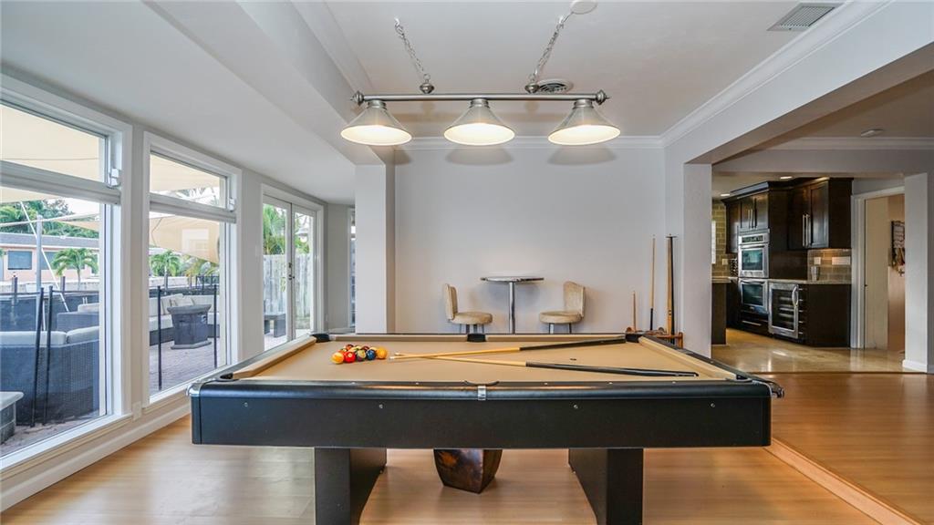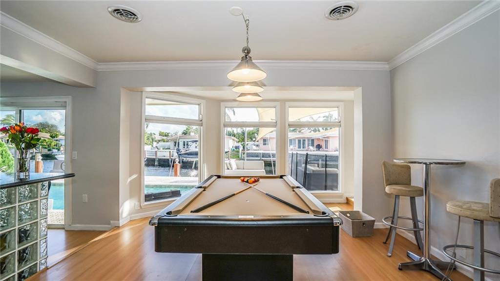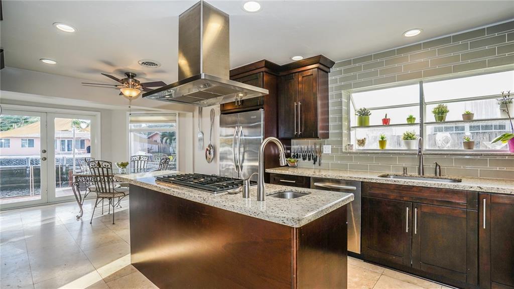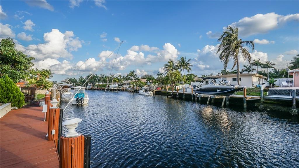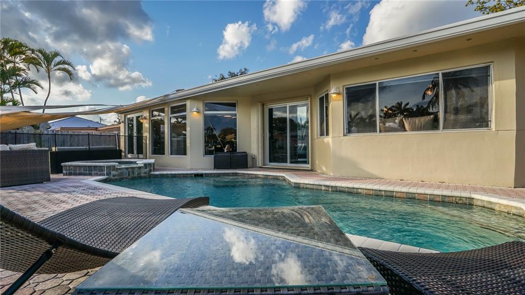 This Waterfront Home HAS IT ALL! with no fixd bridges to ocean. New kitchen cabinetry w/granite & stainless steel appliances. New bathrooms with high-end shower fixtures. High Impact Doors. Large master suite, fabulous pool area and shaded deck. Dock can handle a 75ft boat. Office/4th bedroom can be easily converted back to garage. Bar with tropical salt water fish aquarium. Very close to the very best schools in quiet neighborhood. Great location near beach, shopping, groceries stores,golf & restaurants.