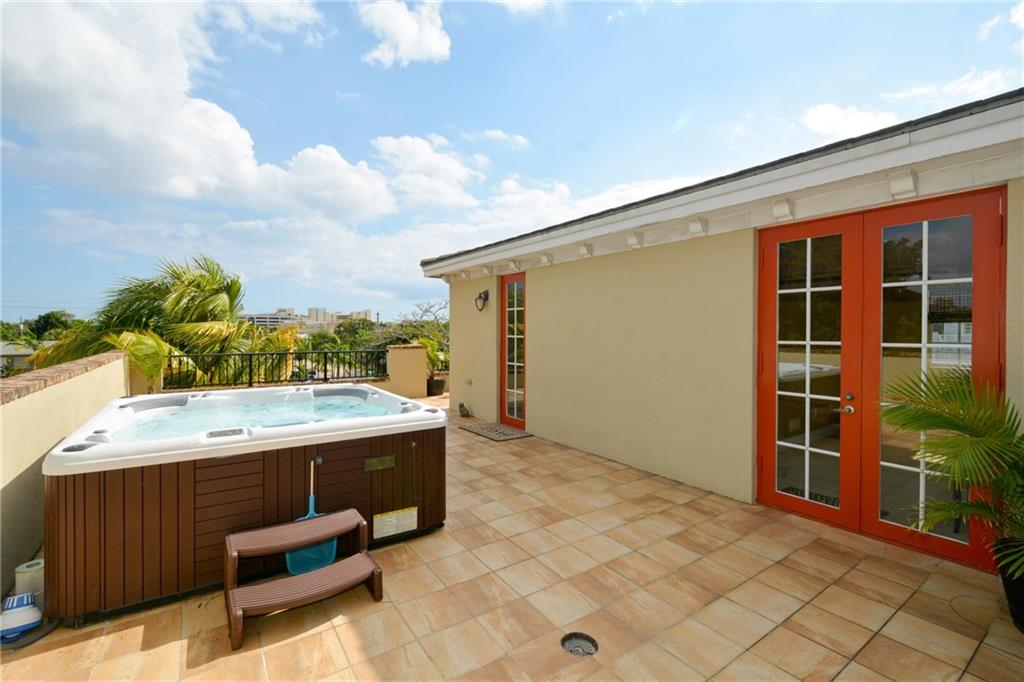 Beautifully appointed attached 3-Story, 3bd/3.5ba home w/rooftop terrace, hot tub (over looking the city) w/ two car garage. Gourmet kitchen, granite, custom cabinets, Frigidaire Prof. SS Appliances, high-end finishes, crown moulding, 10 Ft ceilings, master suite w/roman tub. Private tropical courtyard w/room for pool. 2011 const., w/high impact windows & doors & dual-zone A/C. Close to shopping, dining & night life. Min. to I-95, beaches & easy access to FLL. No HOA! A must see, easy to show.