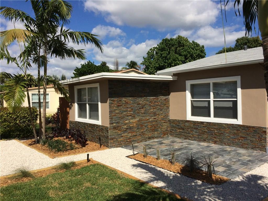 Incredible remodel like a brand new home price adjusted to SELL! Gorgeous interior & exterior features. Interior, rectangular grey tiles. Granite countertops, white cabinetry, brand new stainless appliances. Brand new bathrooms. New casement windows. Stacked stone on exterior. New tropical landscaping exotic palm trees, fruit trees, shrubs. White pebble stone driveway. Gigantic fenced backyard, new sod, roof, AC.Total move-in condition Close to all!Walk, bike to Wilton Manors & downtown. 2-mi to beaches