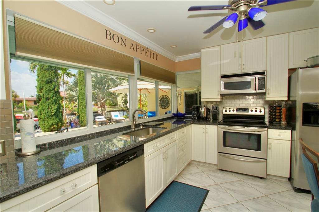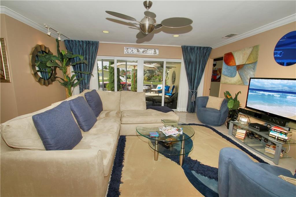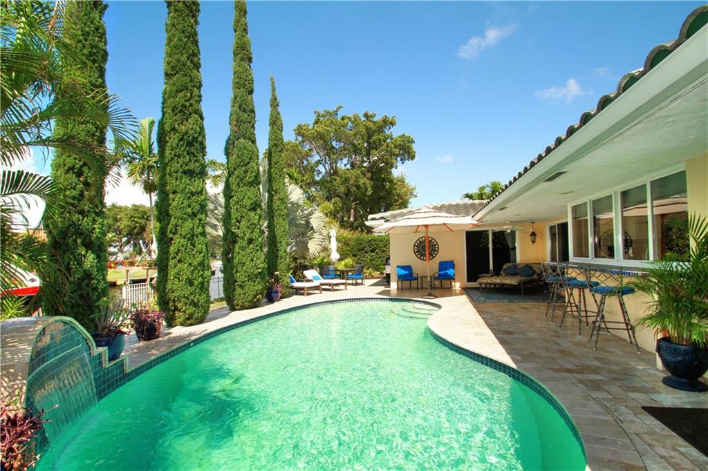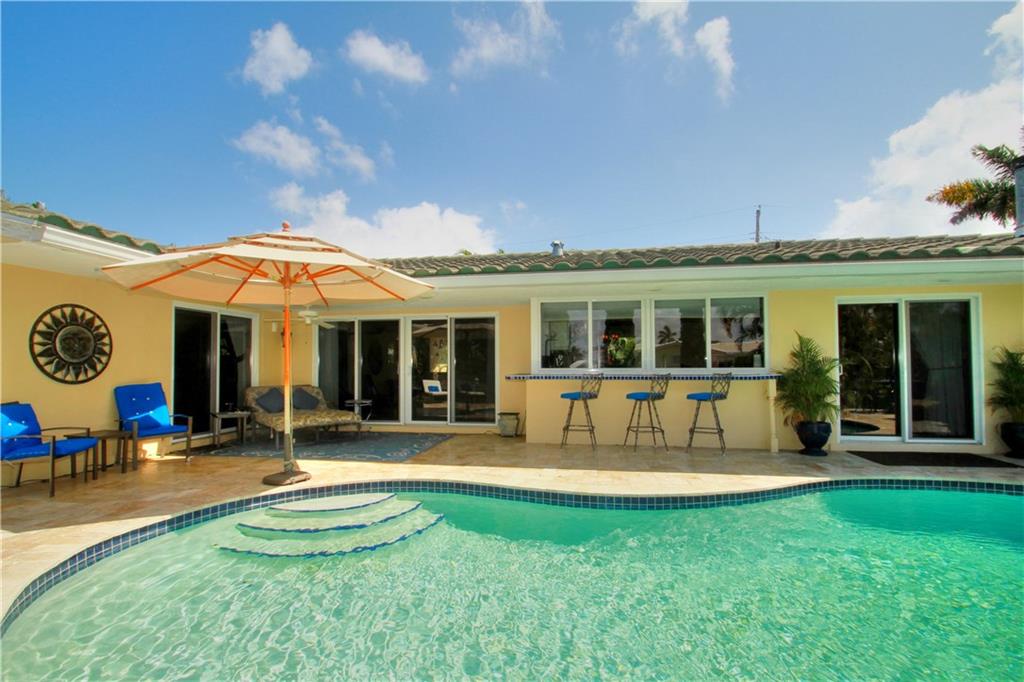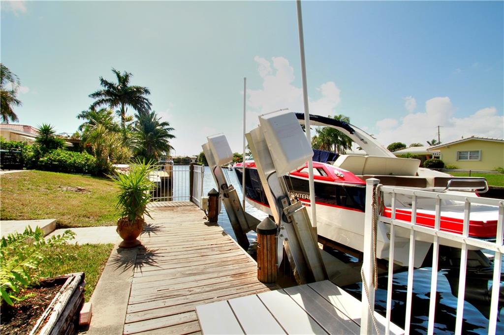 Impressive waterfront view home located on one of the most desirable streets in Imperial Point.Palm & Italian Cypress trees framed by a tumbling pool waterfall. All new pool patio with tumbled marble. Totally remodeled saltwater pool with new pump/heater.Full impact windows & doors. Beautifully remodeled kitchen. Granite counter tops, stainless steel appliances. Lovely family room with cozy fireplace. 3 full bathrooms. New 10,000 lb boat lift.New 3.5 ton over-sized fast recovery air conditioner. Must see!