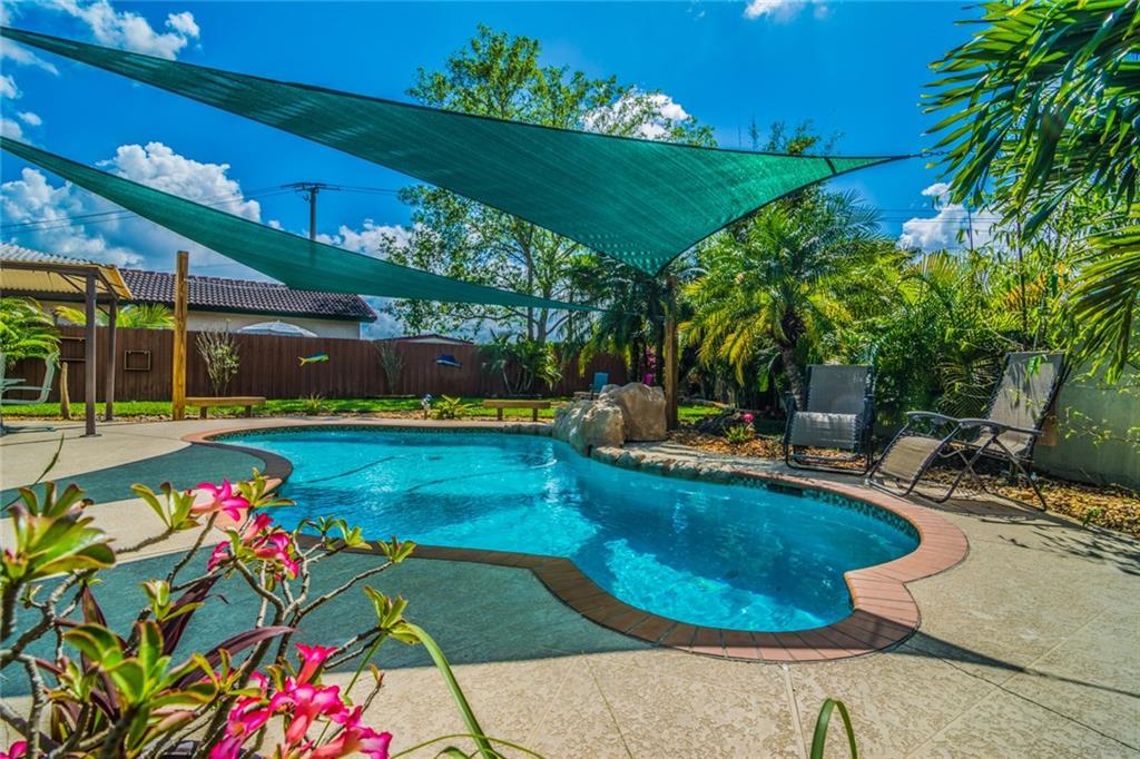 Gorgeous, relaxing, and remodeled 3 bedroom 2 bathroom home is perfect for entertaining. Private fenced yard with covered patio and tons of room to spread out and relax in resort style swimming pool surrounded by lush landscaping. Immaculately maintained with marble tile throughout main living area and wood floors in bedrooms. Gourmet kitchen with stainless steel appliances. Expansive master suite with walk in closet and cabana bathroom. This turnkey home is finished to perfection!