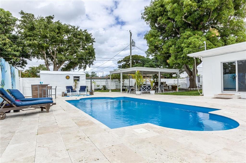 VERY UNIQUE AND RARE PRIVATE COMPOUND! "SOUTH BEACH" STYLE MEETS OLD POMPANO! LIKE A BRAND NEW HOME, THIS 4 BEDROOM/ 3 BATHROOM GEM TUCKED IN THE HEART OF SOUGHT AFTER OLD POMPANO SITS ON AN OVERSIZED LOT WITH A GORGEOUS BACKYARD & LARGE SWIMMING POOL. NO EXPENSE WAS SPARED IN THE REMODEL OF THIS HOME. ITALIAN GLASS TILE FLOORING, QUARTZ COUNTER TOPS, EUROPEAN STYLE BATHS, IMPACT WINDOWS, NEW ELECTRICAL & PLUMBING/PIPING THROUGHOUT THE HOME. FRUIT TREES, GARDENS, WORK SHED WITH ELECTRIC. A MUST SEE!!