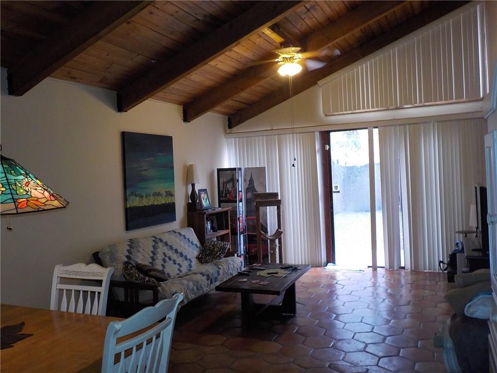 This unique Villa has an upstairs loft which over looks many rooms making it feel as if living in a "Swiss Chalet" . Both bedrooms and baths are located on the 1st floor with a large fence in patio area. Wood beamed vaulted ceilings, tile throughout. Nice fenced in back yard big enough for a pool. Covenant location of Palm -Aire to golf, shopping, restaurants and both I-95 and the turnpike. Association fee is just $160.00 twice a year.