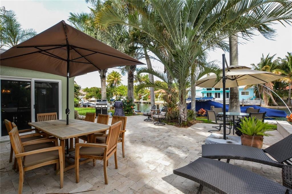 Prime Location!Superb remodel structural and cosmetic!New roof,AC & ducts,PVC water main supply,PVC sewer line,Impact windows & doors thruout,200amp elec service+GE panel,impact garage dr,attic insulation,new flooring,interior&exterior paint,igs renew/replace,exterior lighting,pavers-all permitted 2014&2015!HW heater,dock,granite kitchen/bath upgrades 2016&2017!Fl Rm-Fpl&Bar!Water softener sys. Outdoor shower! Circular drivwy. Lush tropical landscaping-plenty of room for pool!!! Less than 1 mile to ocean!