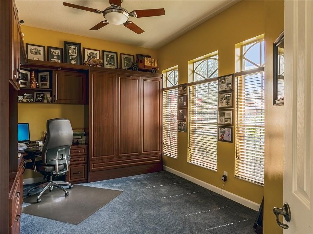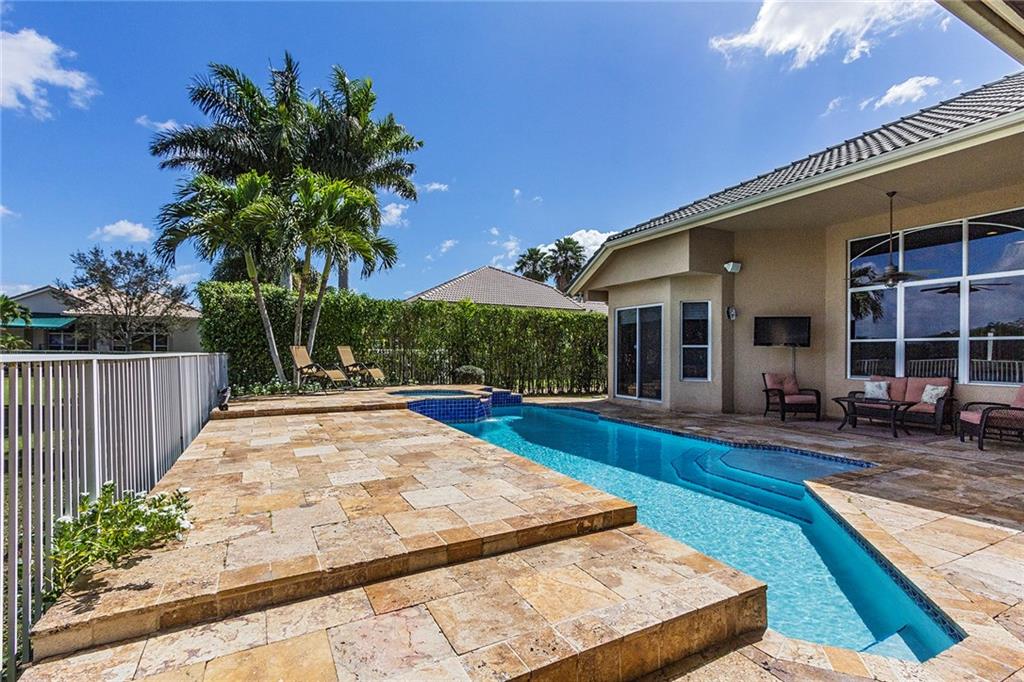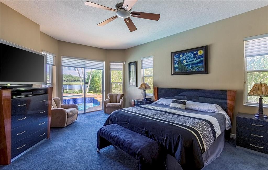 Open floor plan, 3 bed, 3 bath, plus bonus room (office/den) and large private heated pool and hot tub, this home is perfect for entertaining. Located on the best lot in Grand Oaks golf community with recently redone private pool deck overlooking the 9th Tee box of the Grand Oaks Executive golf course. Free, unlimited golfing on this course for the new owner. Large master suite boasts his and her showers as well as large walk in closets.