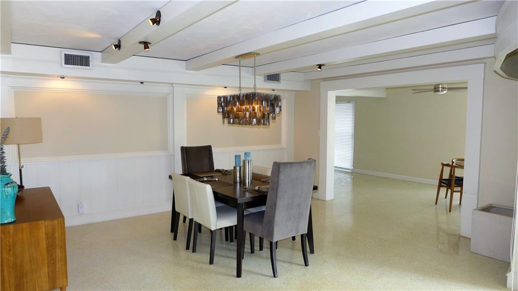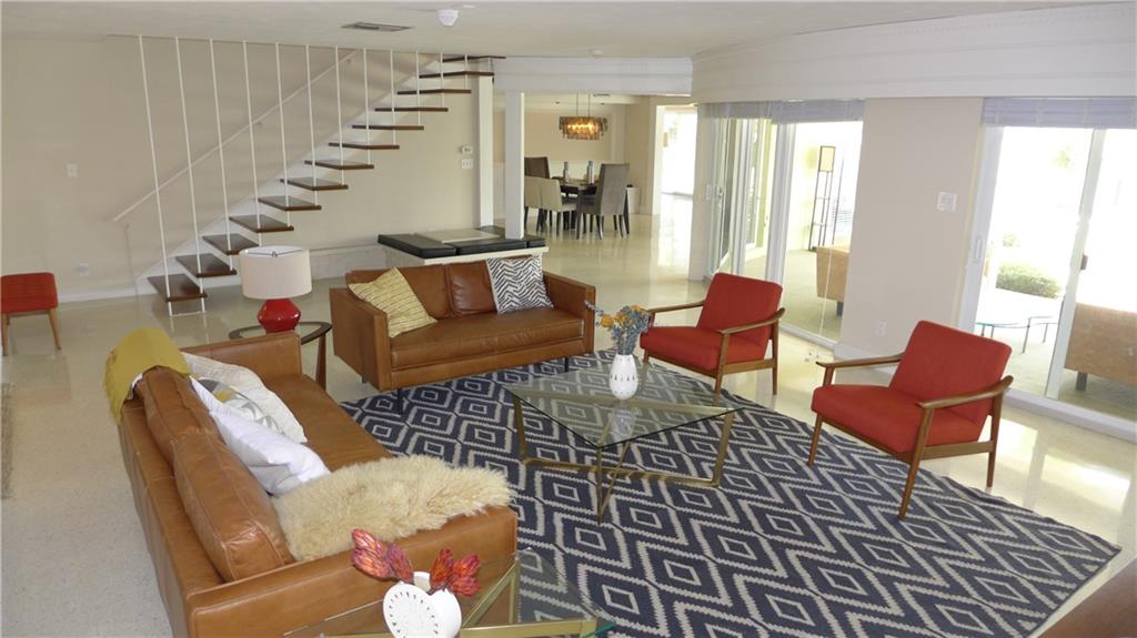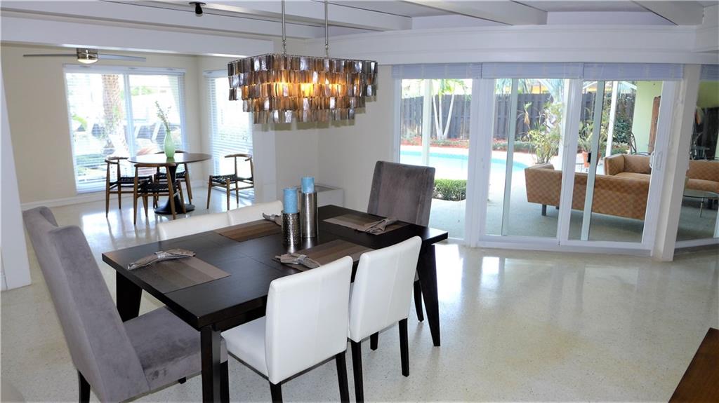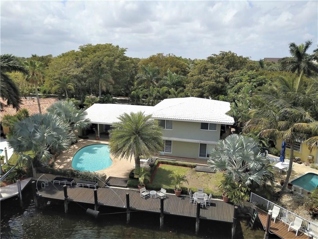 Spectacular & rarely available home displaying such expansive waterway views! 4,298sf of Mid Century Modern w/ terrazzo flooring throughout, 3 incredibly large bedrooms, 1st floor master, separate office, 2 baths & 2 half baths, living & dining rooms, 70' of private dock & no fixed bridges! Serene & spacious outdoor covered living room perfect for rainy afternoons, lush landscaping for full privacy, sun drenched pool, & unobstructed Intracoastal Views. Minutes from Fort Lauderdale Beach & Downtown