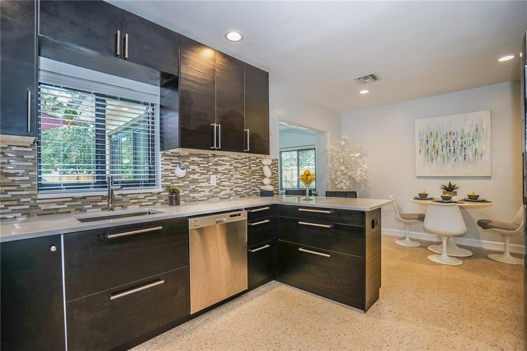MID CENTURY BEAUTY in VICTORIA PARK w/ CURVED BRICK WALL in LIVING ROOM & TERRAZZO FLOORS THRU-OUT. UPDATES IN 2016: NEW IMPACT WINDOWS & DOORS, ELECTRICAL WIRING & PANEL BOXES, NEW S- TILE ROOF w/ STRAPS, BOTH BATHS REMODELED, NEW OPEN KITCHEN w/ BREAKFAST BAR & ESPRESSO TONE CABINETRY, WHITE QUATRZ COUNTERTOPS & TOP OF THE LINE APPLIANCES, NEW LANDSCAPING FRONT & REAR, 35X15 POOL RE-MARCITED, NEW ALL LED LIGHTING, NEW FENCE, NEW AC DUCT WORK & GUTTERS. OFFICE OFF KITCHEN COULD BE 3rd BEDROOM.