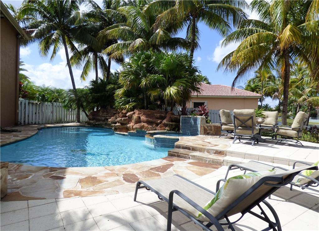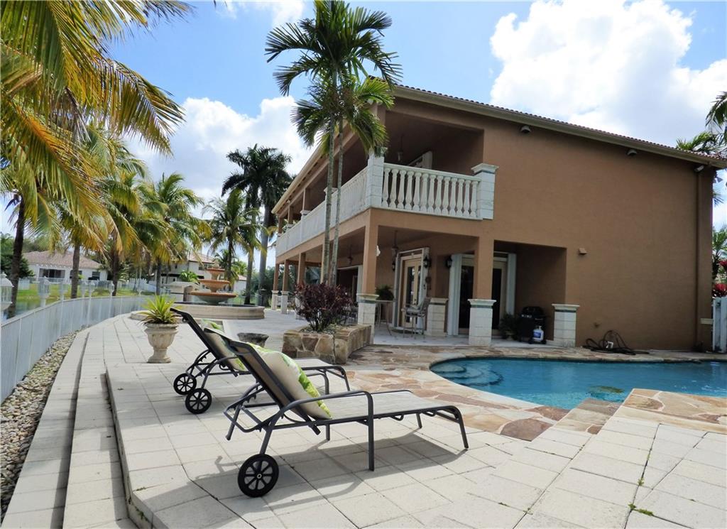 AMAIZING & HIGHLY UPGRADED 5BED, 4.5BATH & 3CAR GARAGE WATERFRONT/POOL HOME LOCATED ON ONE OF THE BIGGEST LOT IN THE COMMUNITY. NEWER KITCHEN W/ 42"CABINETS AND GRANITE COUNTERTOPS. MARBLE FLOORS IN THE ENTIRE HOME, ACCORDION SHUTTERS, UPGRADED BATHROOMS, CROWN MOLDING, FRENCH DOORS, IRON STAIRCASE & CUSTOM ENTRY DOOR. 1BED/1BATH ON 1ST FLOOR. BUILT-INS AND MUCH MORE. SUPERB COVERED TERRACE ON 1St & 2nd FLOOR, AWESOME POOL AREA & WATERFALL, UNIQUE BACKYARD. THIS IS A ONE OF A KIND HOME! DON'T MISS IT!