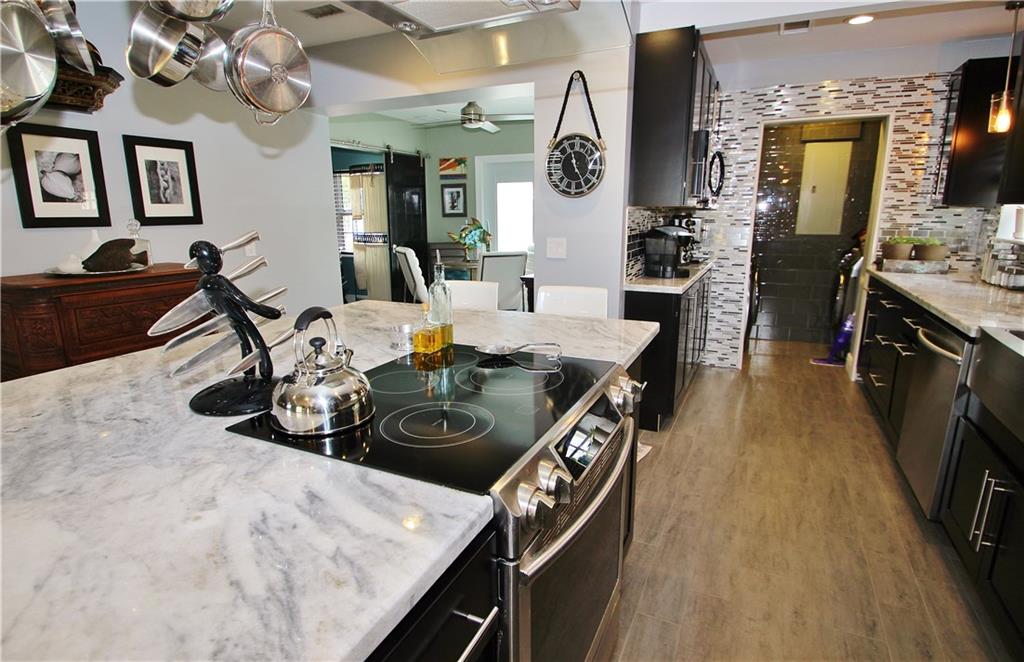 Words can't describe the Detail & Beauty that's gone into this TOTALLY renovated home. Open concept living at its best with Gourmet, Designer Kitchen featuring all High-End Stainless Steel Appliances, Gorgeous Cabinetry, Unique Granite, Tile Back Splash, Custom Lighting, Wine Cooler & Top of the line Washer & Dryer. Beautiful Wood pattern Tile throughout. Custom Barn Doors lead into 3rd Bedroom/Office. Dining area overlooks HUGE, Fenced-in Yard with room for Pool, RV/Boat Storage and/or Expansion, WOW!