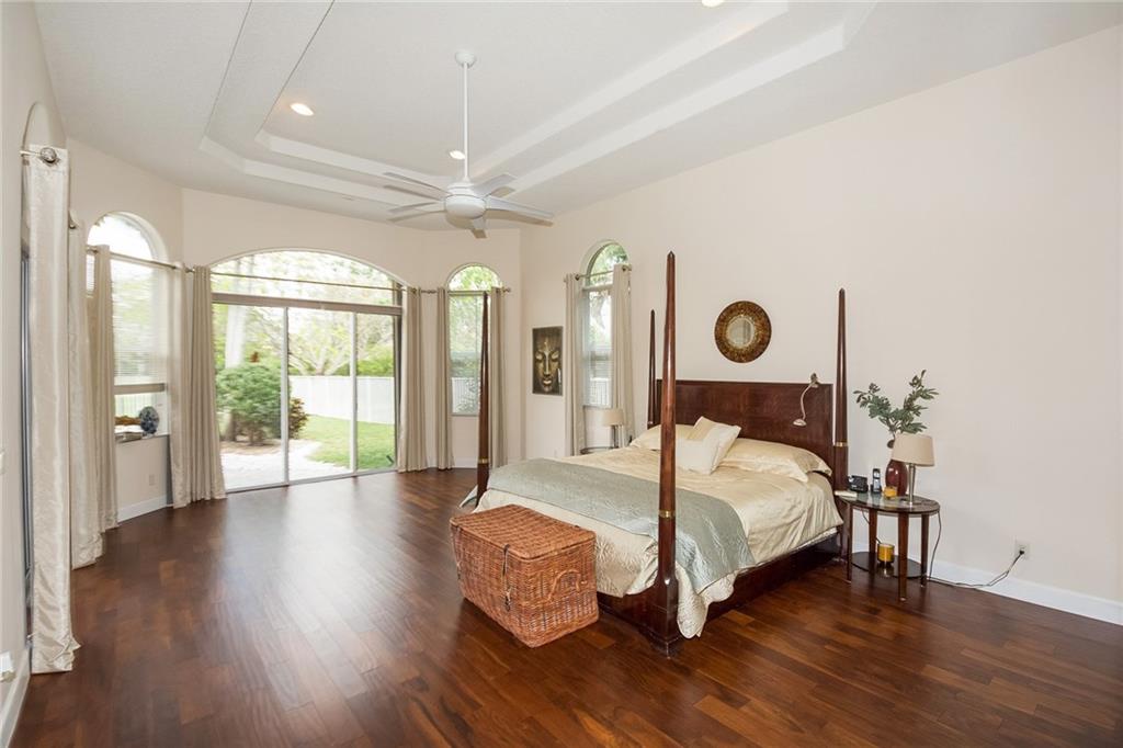 Fabulous family home with spectacular water ways with long lake views. Immaculately maintained. Spacious, open floor plan with high ceilings, gourmet kitchen and large master suite. Triple split floor plan ,Bright home freshly painted with lots of windows. Set back on corner lot in a very quiet neighborhood. Easy to show call either agent for access. Brand new chandliers/ and wood floors in all bedrooms