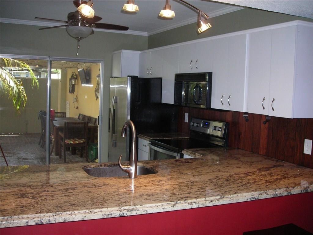MUST SEE! Lowest priced townhouse/villa, move in ready in security patrolled community with many amenities. Open kitchen with newer SS appliances, granite counters and full size washer/dryer. Private front patio/carport and back patio with screened enclosure w view of the lake. SPACIOUS BEDROOMS with walk-in closets. NO 1 yr maintenance escrow, NO common fee deposit. Cable, water/trash, pest control, insurance and many amenities included in HOA fee. Walk, bike to Publix...like single family home!