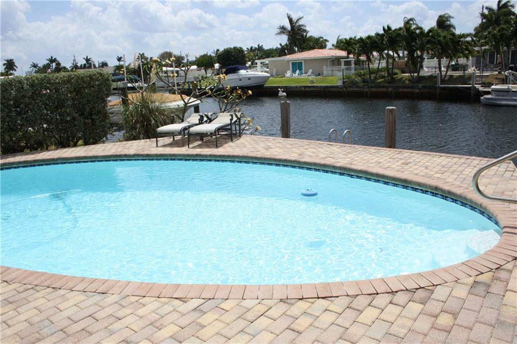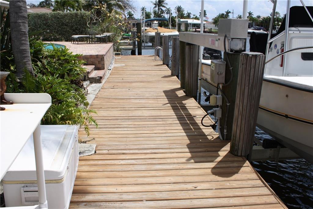 Fishing is in your future after you purchase this beautiful 4 bedroom, 2 & 1/2 bath waterfront home in Garden Isles. Triple split bedroom plan. Expanded kitchen w/ cooking island, sub-zero refrigerator, granite counters & real wood cabinetry. 2 zone AC system cools this 2198 sq. ft. home. Tile flooring in main living areas. Brick pavers around the pool. Hurricane shutters for all windows & doors. 12,000 lb. boat lift, 55 feet dock with water and electric. 70 ft. on the water with ocean access.