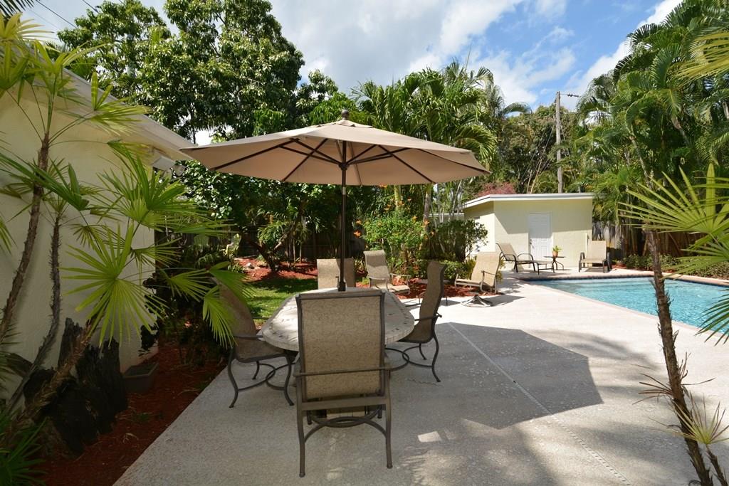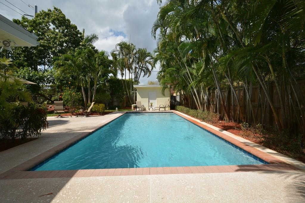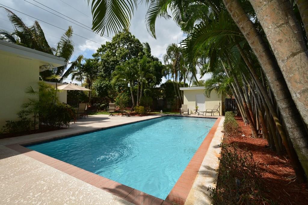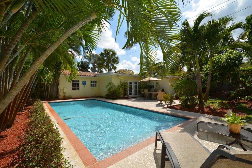 Unique corner property, winner of the City of Ft Lauderdale WOW Award for spectacular landscape. 3/2 on an oversized lot in beautiful Tarpon River area. Interior features include wood floors, crown molding, French doors, updated bath, split bedroom plan & family room w/fireplace. Exterior features a pool house, sprinkler system on well, huge paver driveway, and an oversized pool. Thousands spent on lush landscaping - rare trees & bushes throughout. Close to airport, I95, shops and restaurants.
