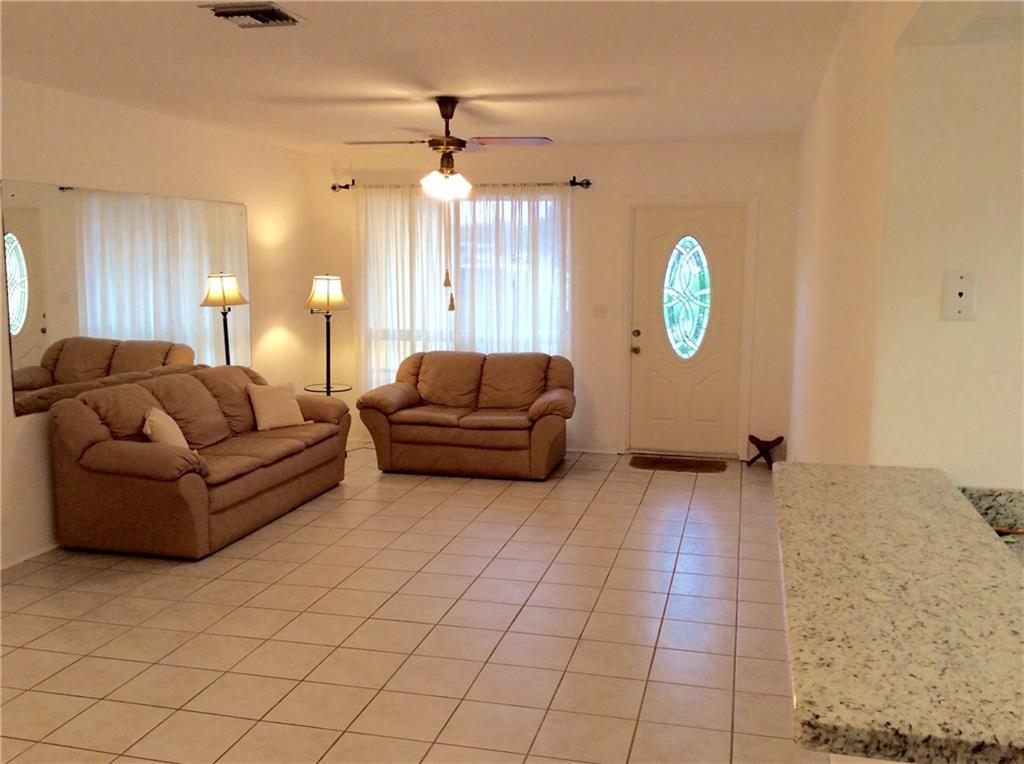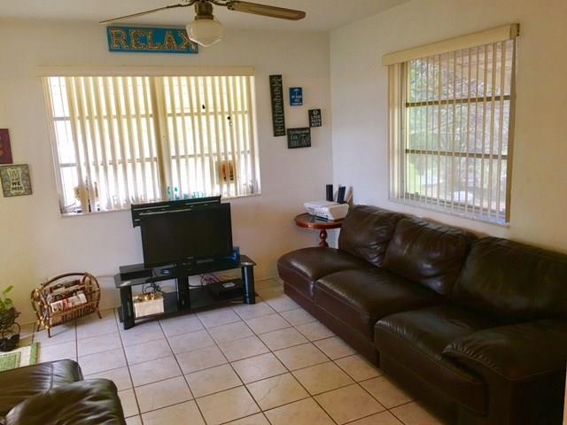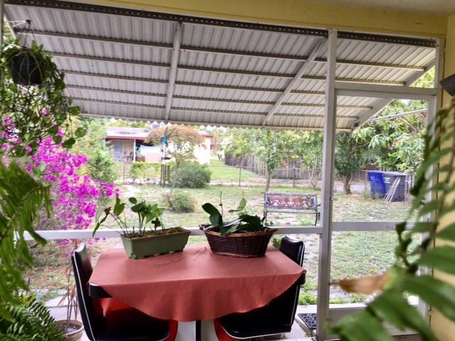 Clean, roomy, bright and well-kept 2/2 home with Sun/TV Room, Laundry Room, Screened Porch and 1-car Garage. Upgrades include newer white wood kitchen with granite counters, snack counter bar, full S/S appliances, water heater, electric and exterior paint. Walk-in closets in both bedrooms and full linen closet. Good size yard with mature mango and avocado trees.