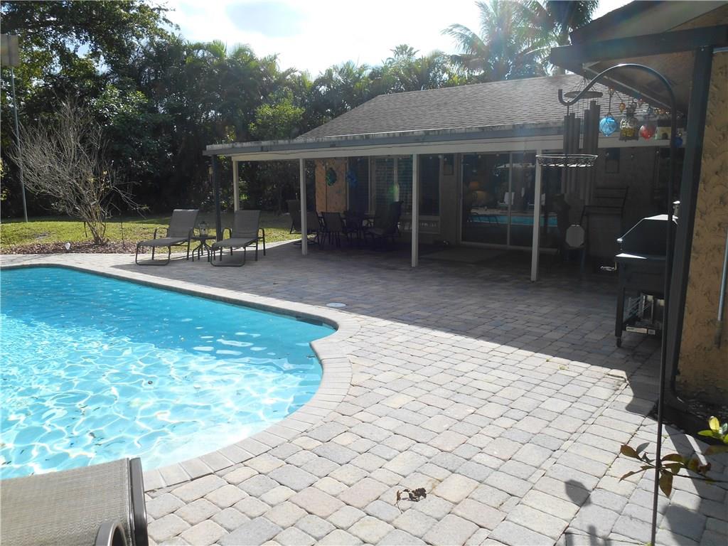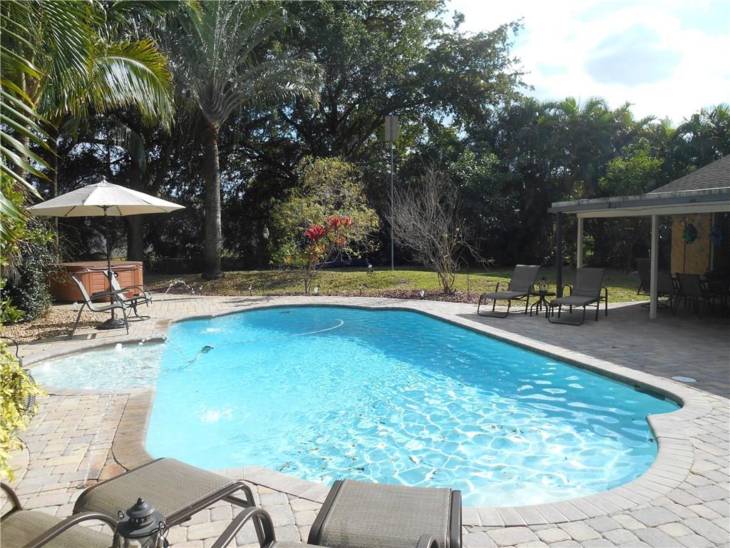 UNIQUE MODEL WAS ORIGINALLY 4 BEDROOMS 2.5 BATHS.A WALL WAS TAKEN DOWN TO ENLARGE THE FAMILY RM.LIVING ROOM WITH VAULTED CEILINGS.FOYER ENTRANCE.LOCATED AT END OF CUL-DE-SAC ON ONE OF THE LARGEST LOTS IN THE NEIGHBORHOOD.SECLUDED TROPICAL POOL AREA PLUS HUGE BACKYARD THAT BACKS UP TO A CANAL.PAVER POOL PATIO,HOT TUB AND COVERED PORCH.UPDATED KITCHEN WITH GRANITE COUNTERTOPS.UPDATED BATHROOMS.MASTER BATH UPDATED W/ JACUZZI TUB.IMPACT WINDOWS. ROOF NEW IN 2011.DONE WITH GABLE END BRACING TO STRENGTHEN ROOF.