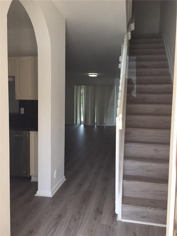 MOVE IN READY 3 bedroom, 2 and a half bath newly updated townhouse boasts endless stunning LAKE VIEWS right when you walk in the front door! Freshly painted interior, brand new granite countertops, brand new stainless steel appliances, brand new GORGEOUS engineered wood throughout the unit, 2 assigned parking spots, and newer A/C unit. Secured gated community with pool, clubhouse & tennis court. Low association fee covers security, exterior insurance & roof.